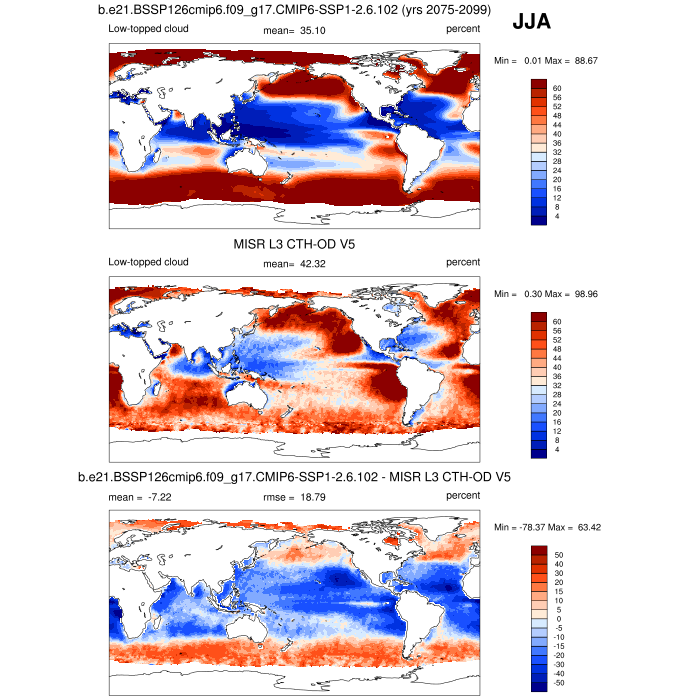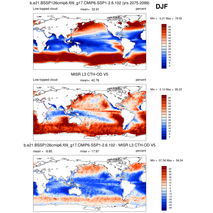 | CLDLOW_MISR | Low-topped cloud amount (tau > 0.3) | plot | plot | plot |
