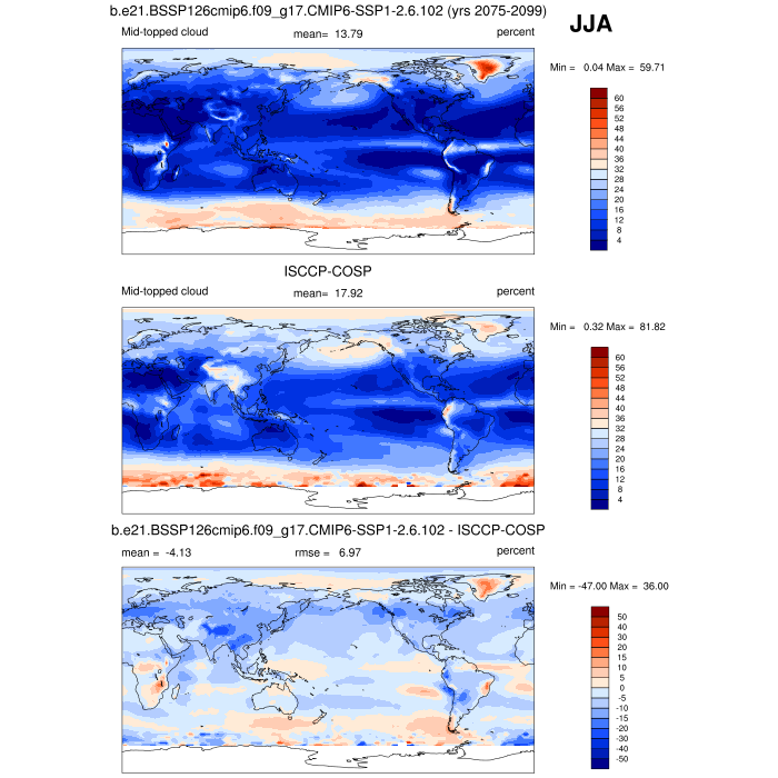 | CLDMED_ISCCPCOSP | Mid-topped cloud amount (tau > 0.3) | plot | plot | plot |