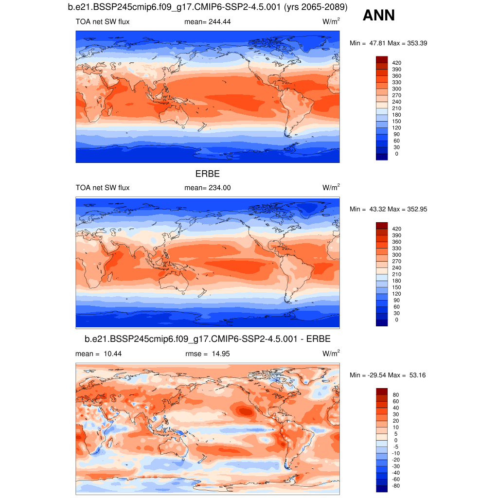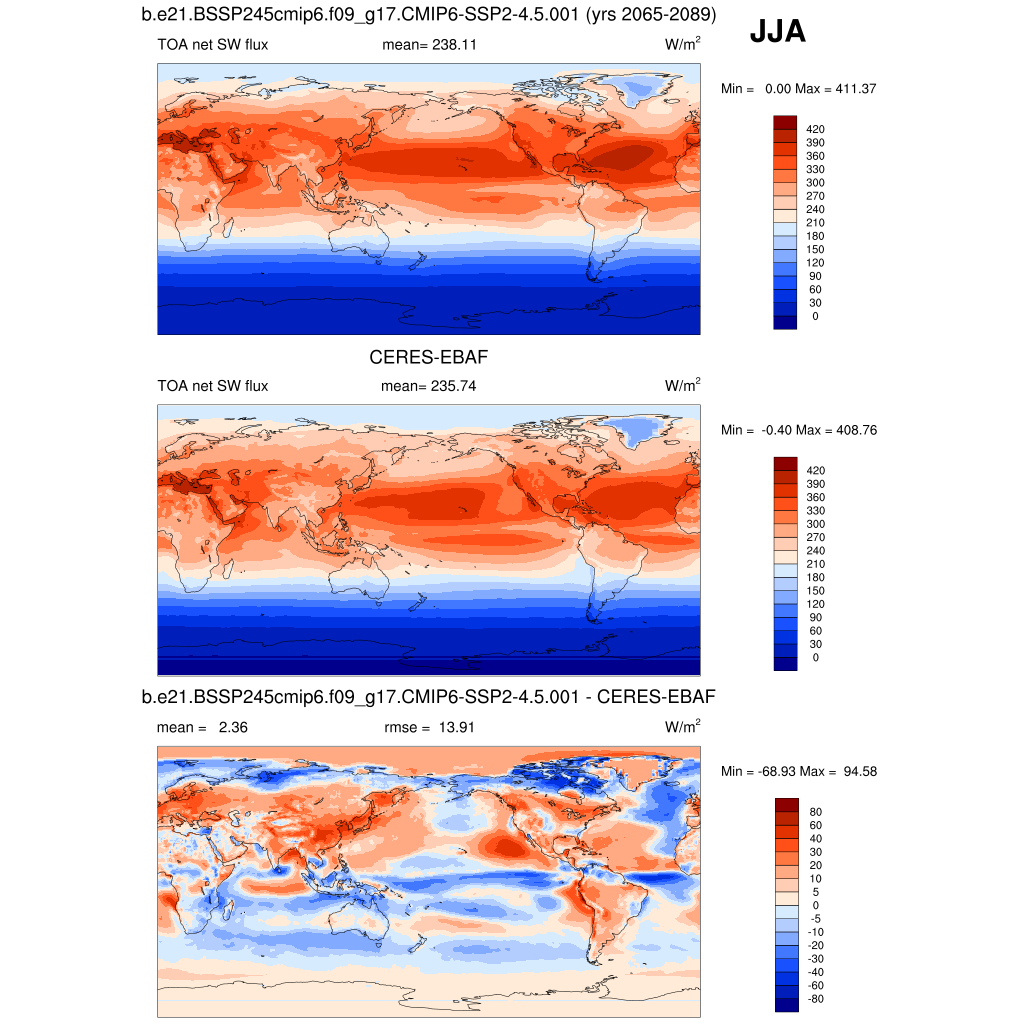 FSNTOA * TOA net SW flux plot plot plot