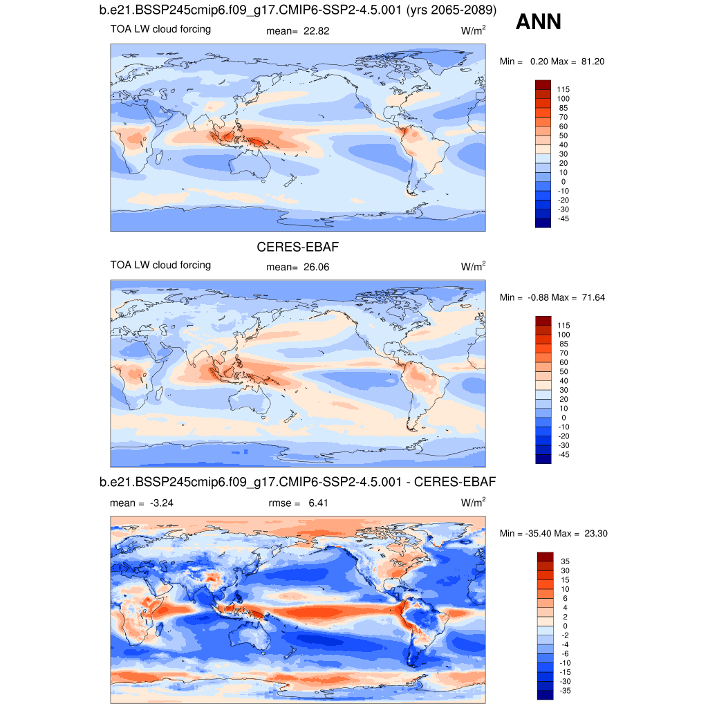 LWCF * TOA longwave cloud forcing plot plot plot