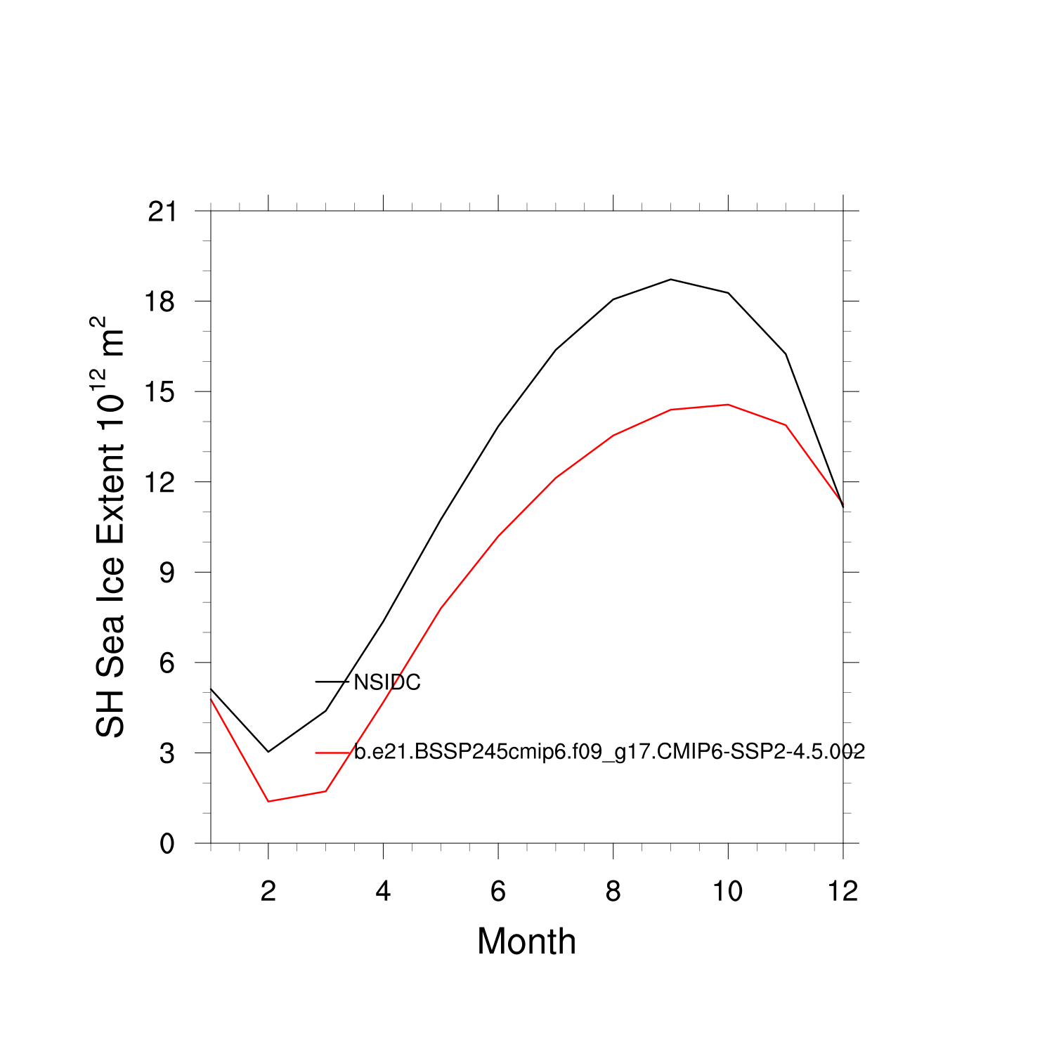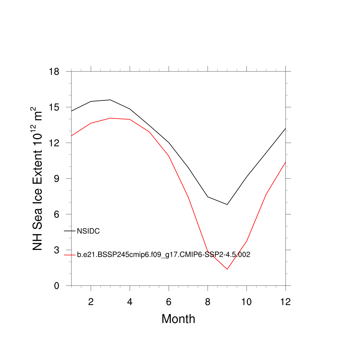 Climatological Monthly Mean Extent vs Obs plot plot