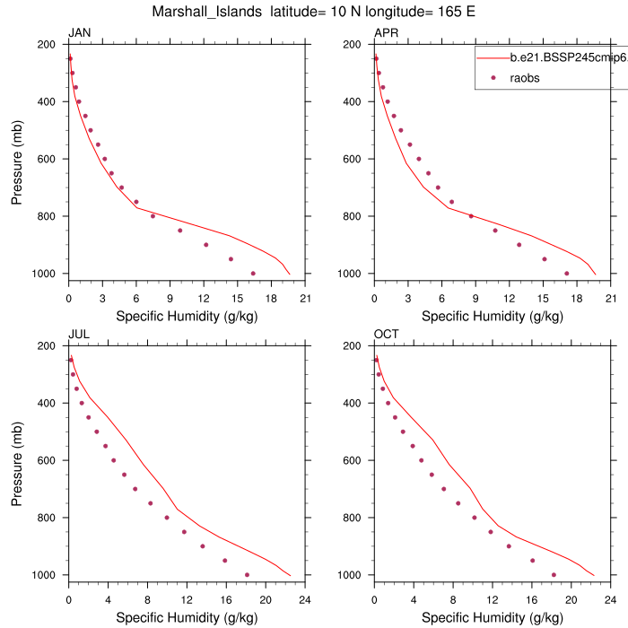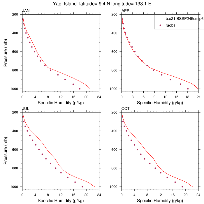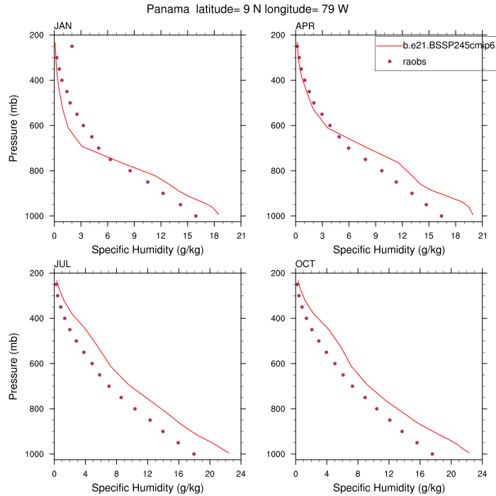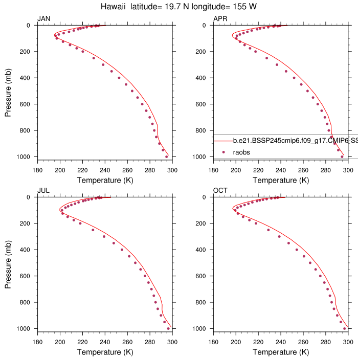 b.e21.BSSP245cmip6.f09_g17.CMIP6-SSP2-4.5.101Set 12 - Vertical Profiles at 17 selected raobs stations
