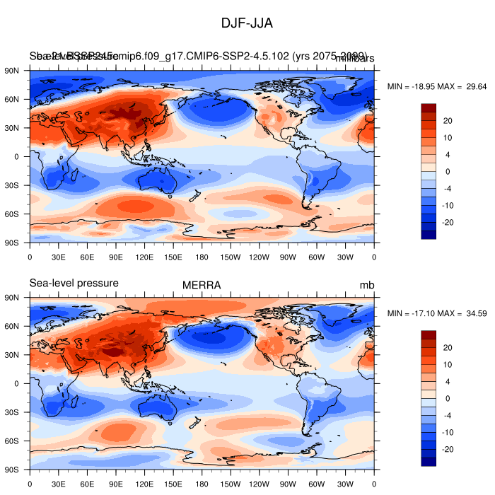 b.e21.BSSP245cmip6.f09_g17.CMIP6-SSP2-4.5.102DIAG Set 9 - Horizontal contour plots of DJF-JJA differences