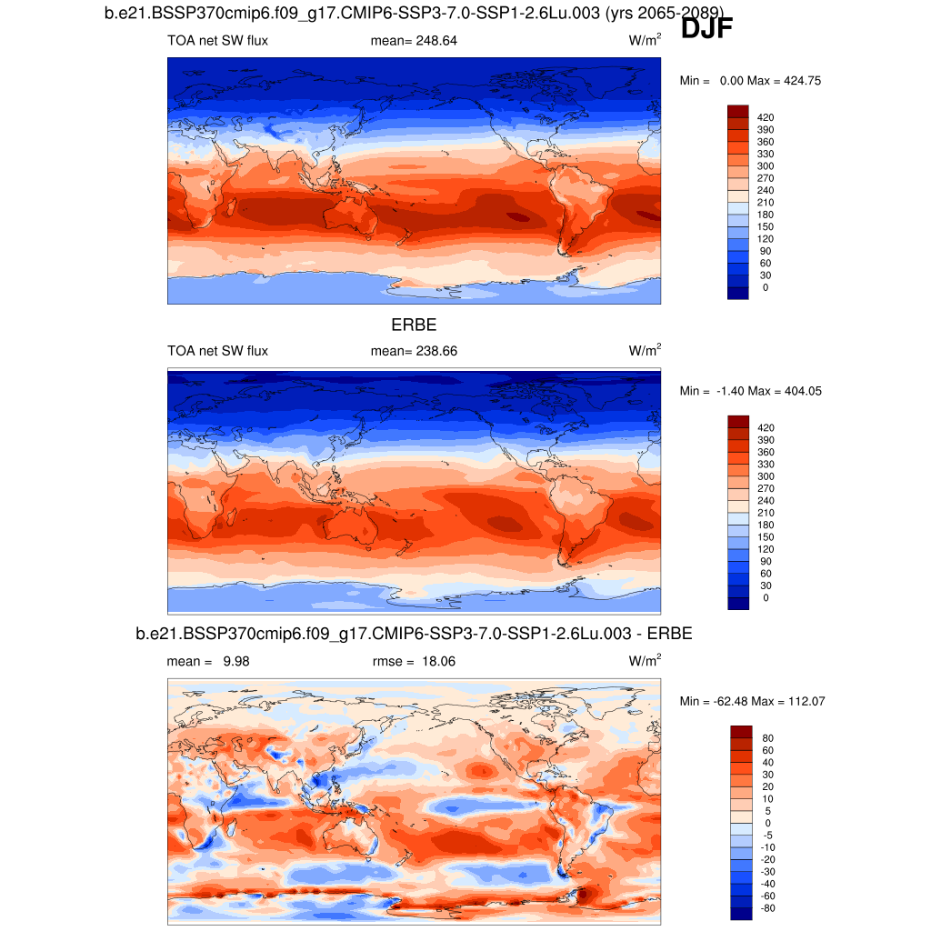 FSNTOA * TOA net SW flux plot plot plot