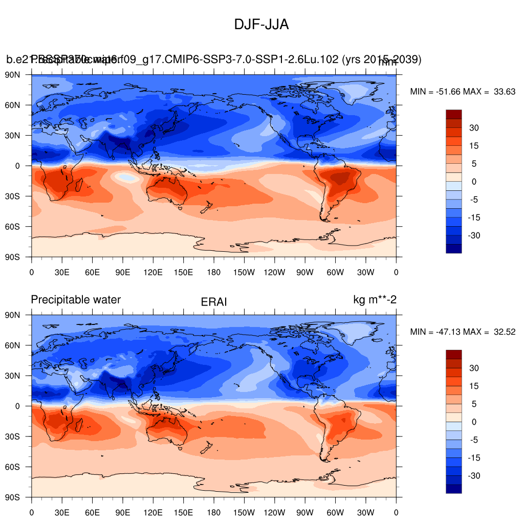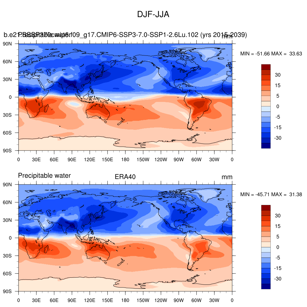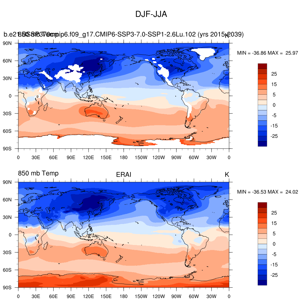 b.e21.BSSP370cmip6.f09_g17.CMIP6-SSP3-7.0-SSP1-2.6Lu.102DIAG Set 9 - Horizontal contour plots of DJF-JJA differences