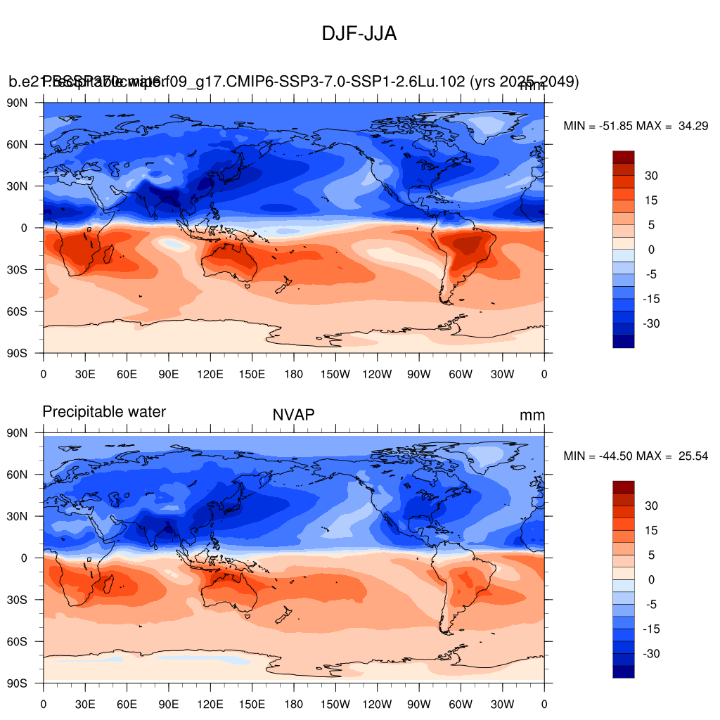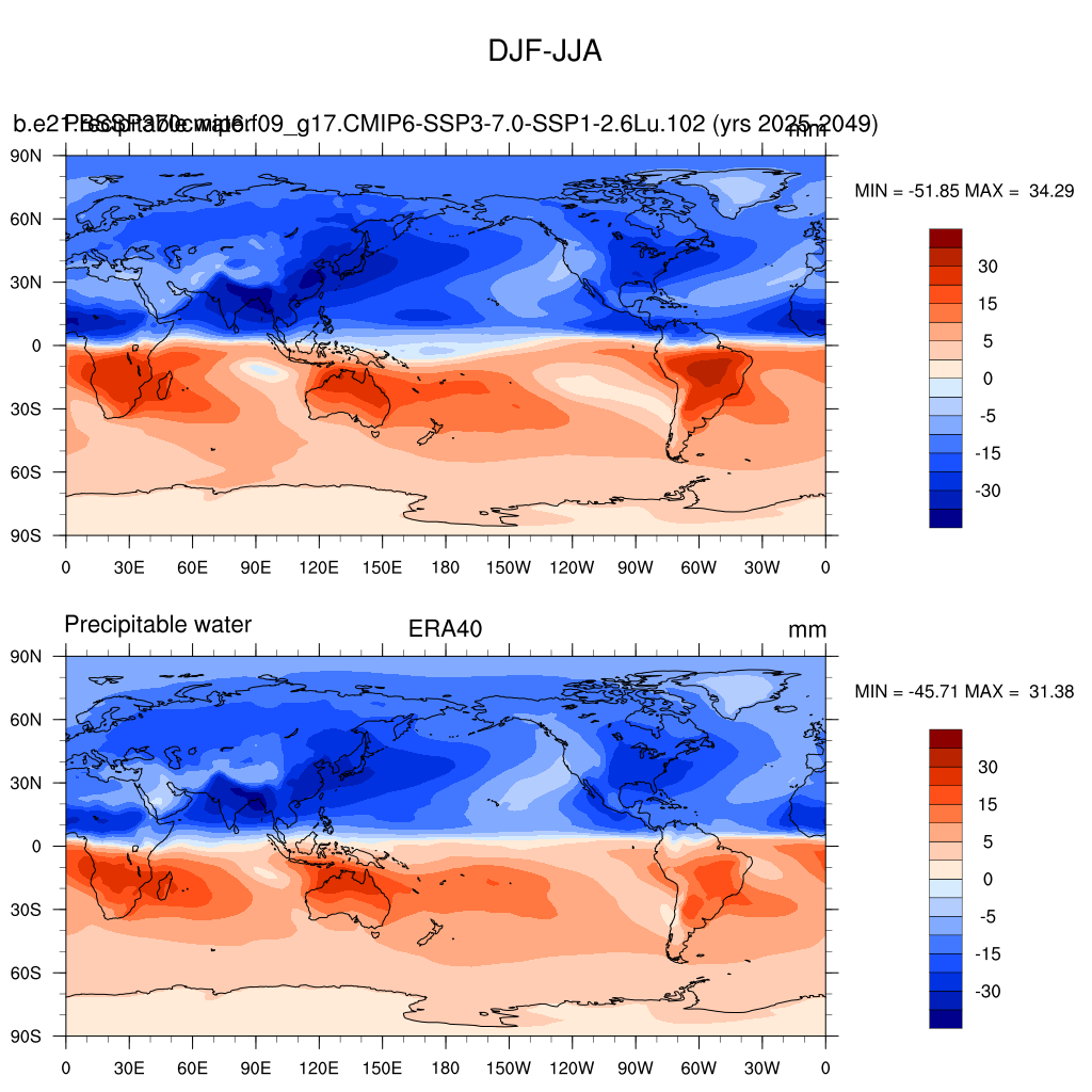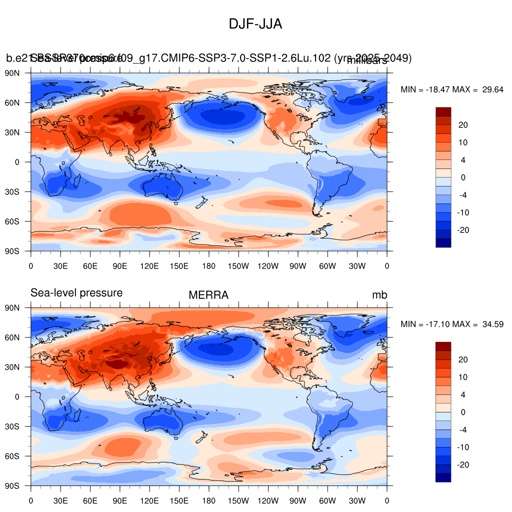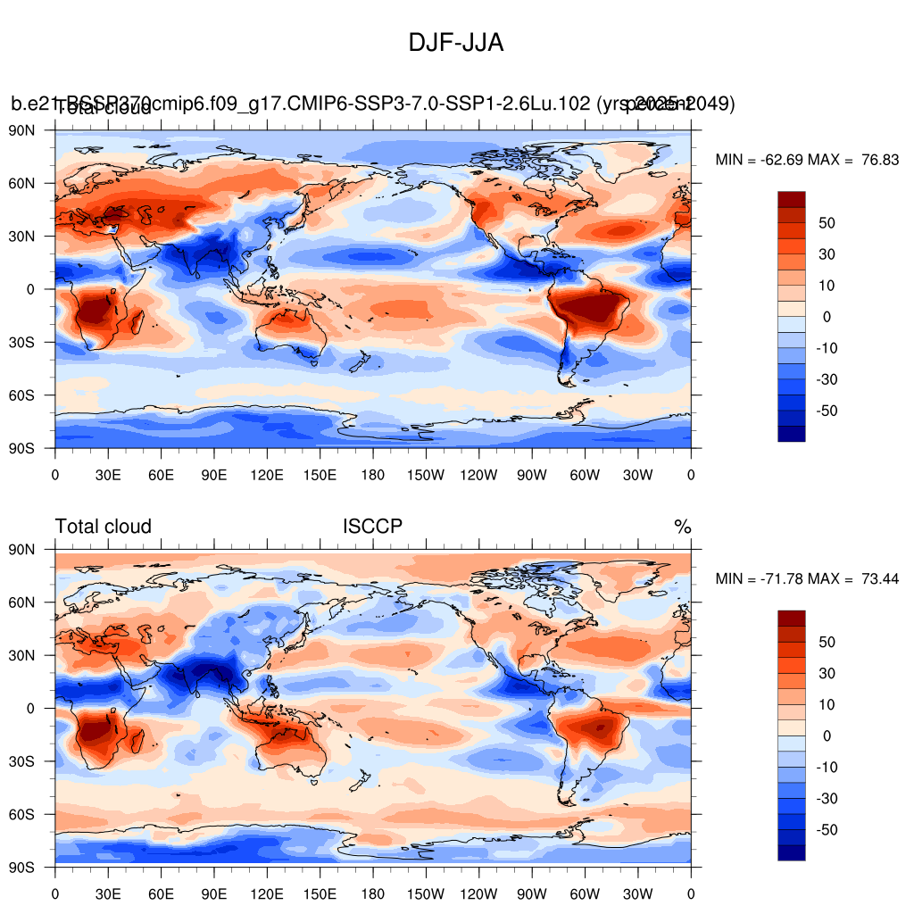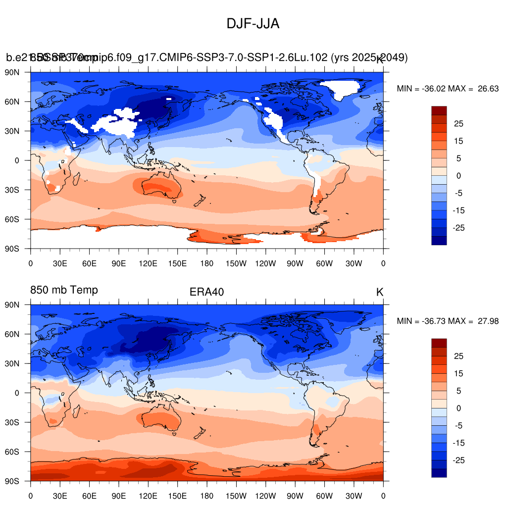 b.e21.BSSP370cmip6.f09_g17.CMIP6-SSP3-7.0-SSP1-2.6Lu.102DIAG Set 9 - Horizontal contour plots of DJF-JJA differences