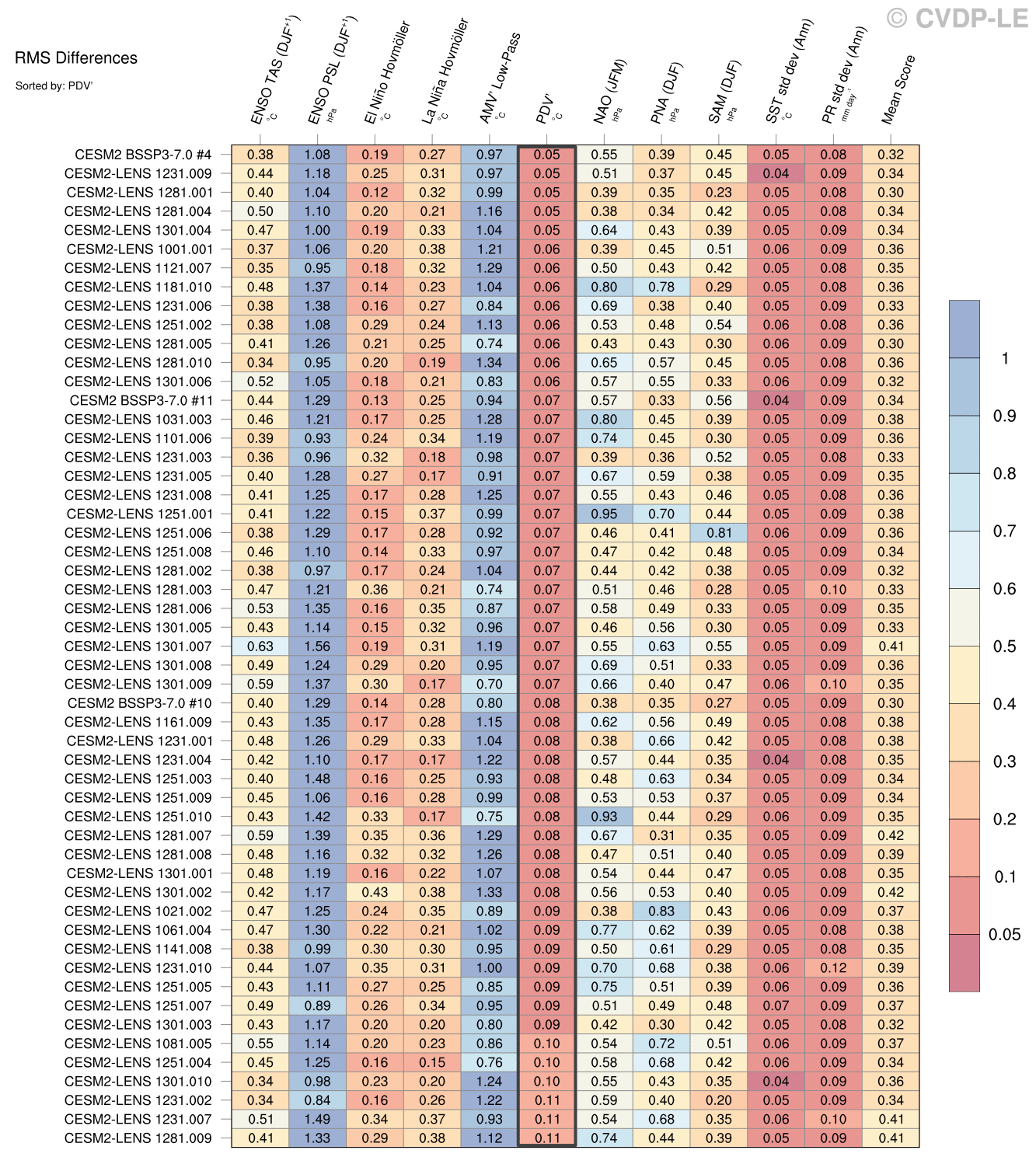 | Sort By: | Namelist (default) | Namelist (Alphabetically) | ENSO TAS | ENSO PSL | El Niño Hovmöller La Niña Hovmöller | AMV' Low-Pass | PDV' | NAO | PNA | SAM | SST std dev | PR std dev | Mean Score |