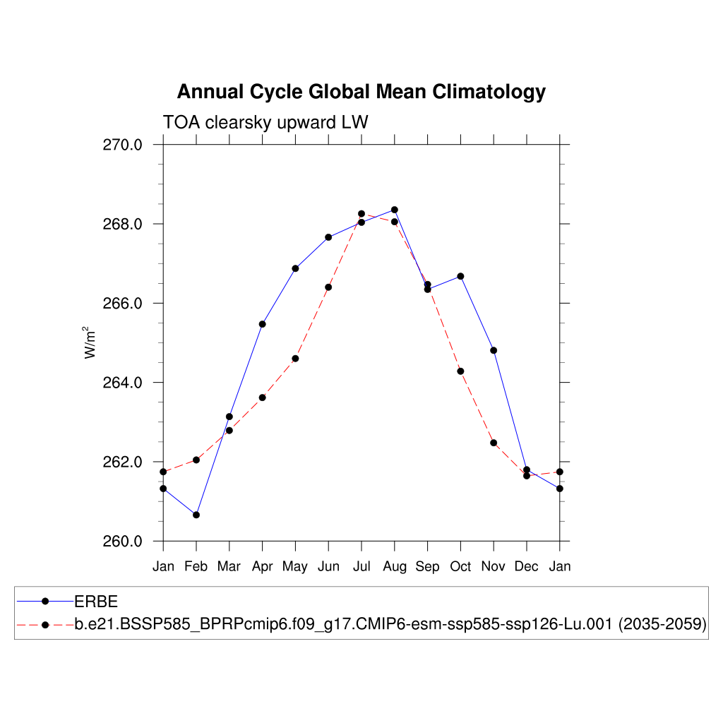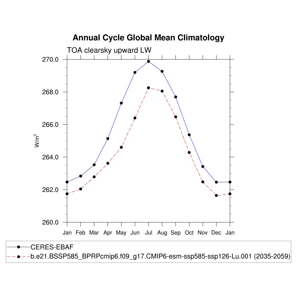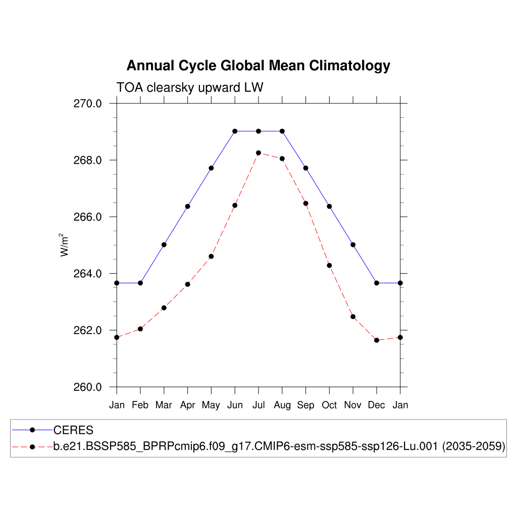 FLUTC TOA clearsky upward LW flux plot