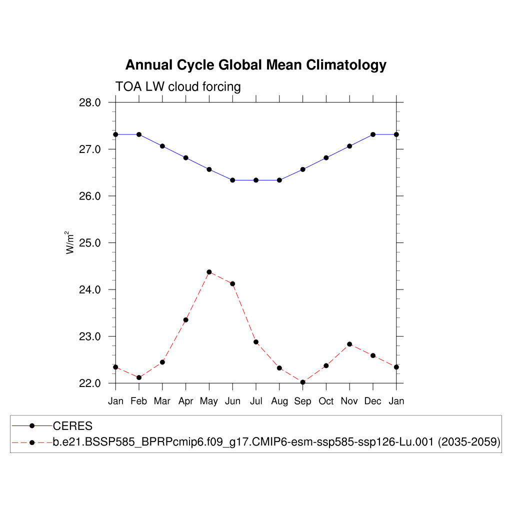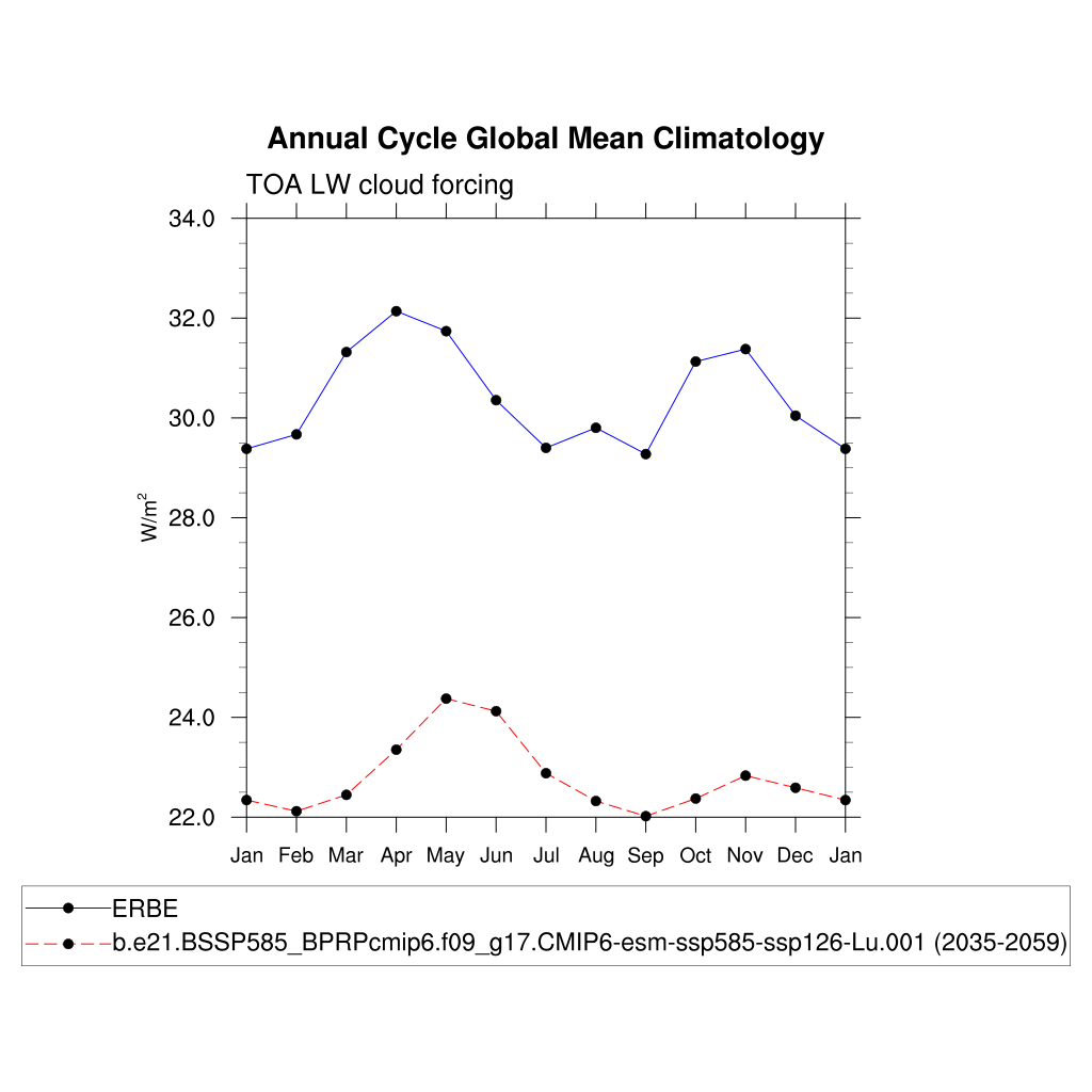 LWCF TOA longwave cloud forcing plot