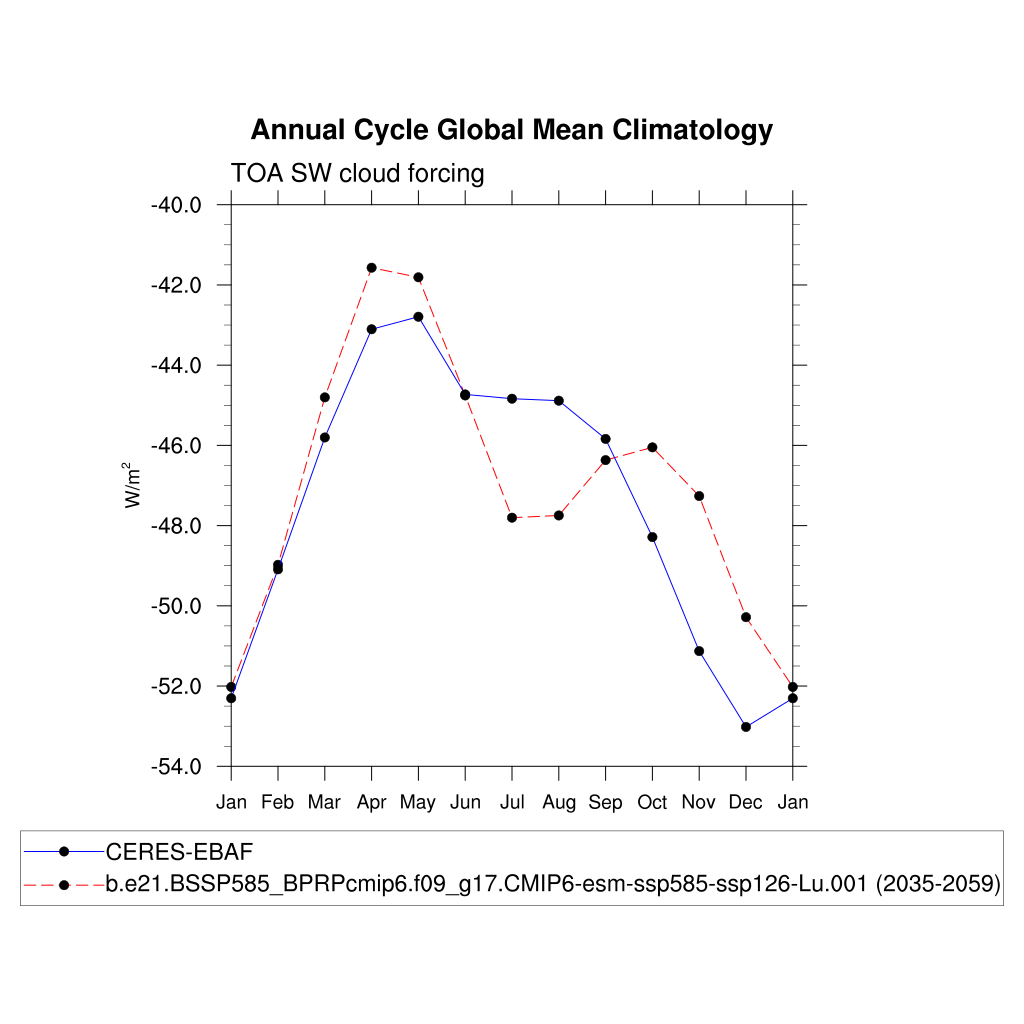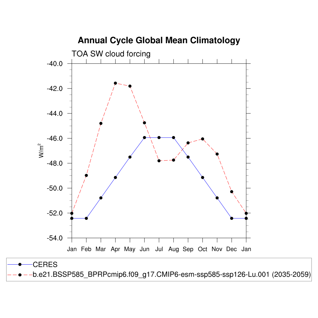 SWCF TOA shortwave cloud forcing plot