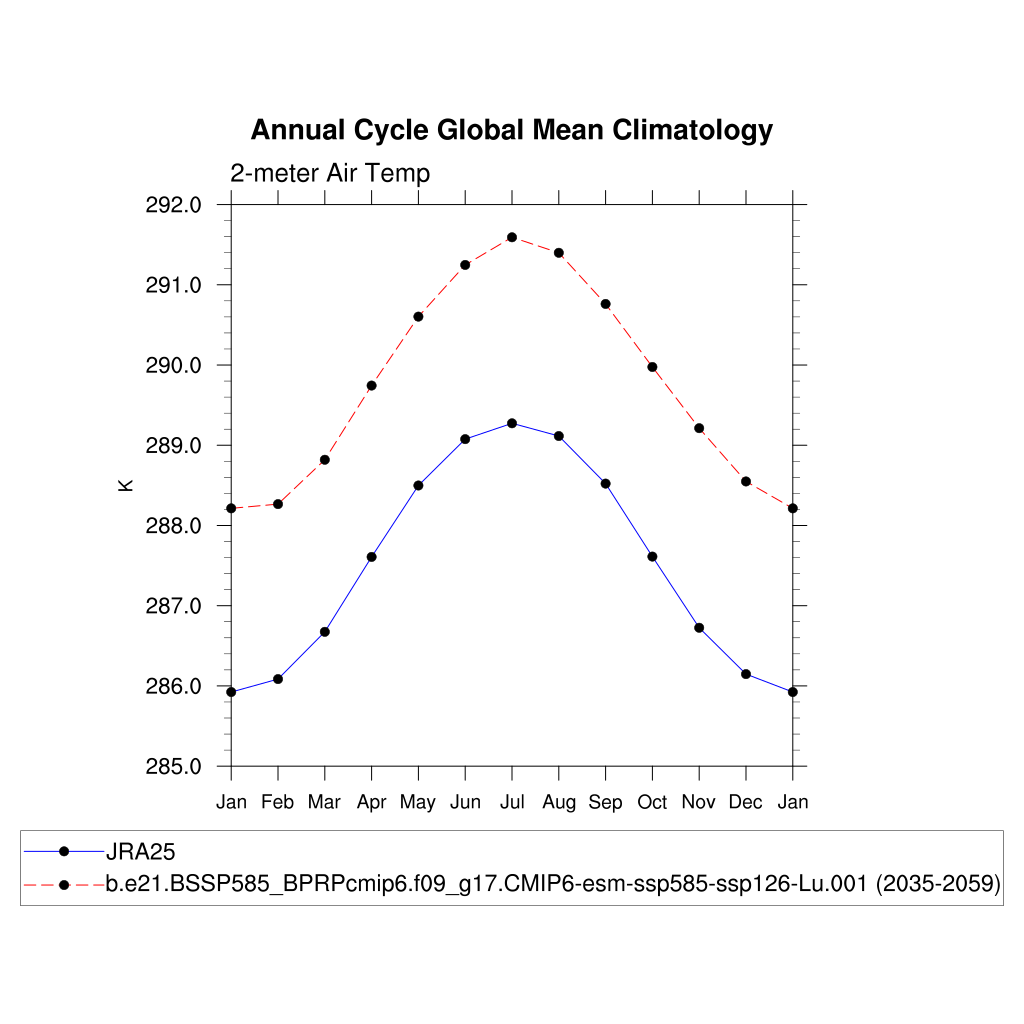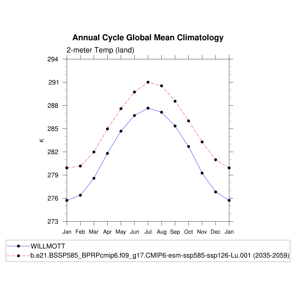 TREFHT 2-meter air temperature (land) plot