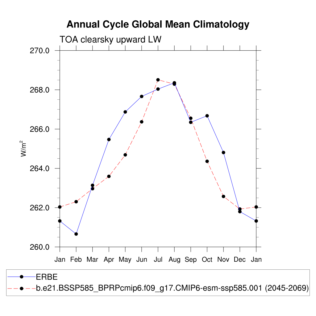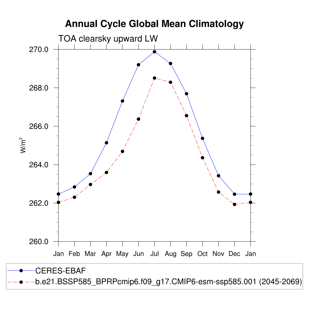 FLUTC TOA clearsky upward LW flux plot