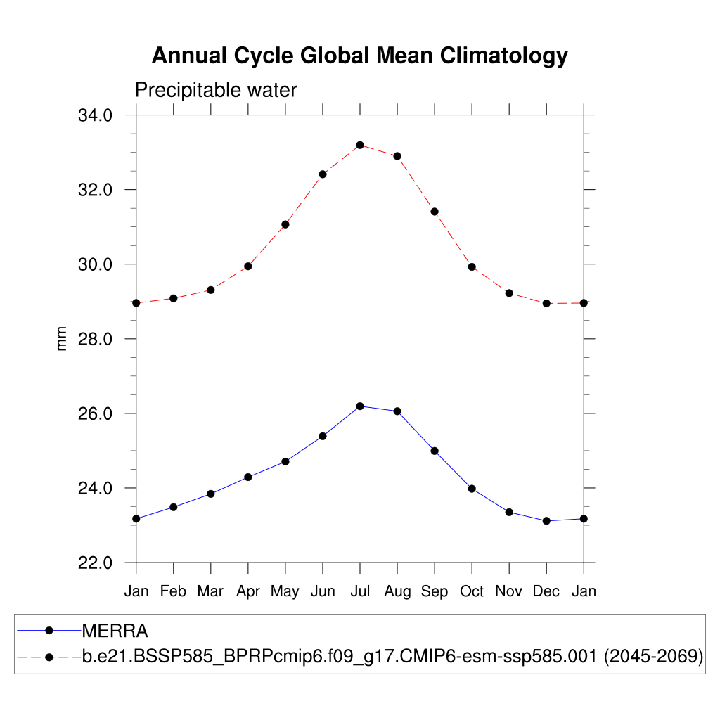 PREH2O Precipitable water (ocean) plot
