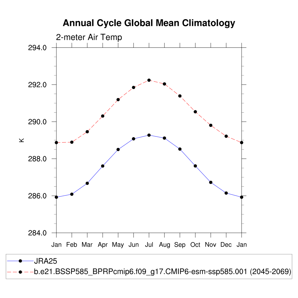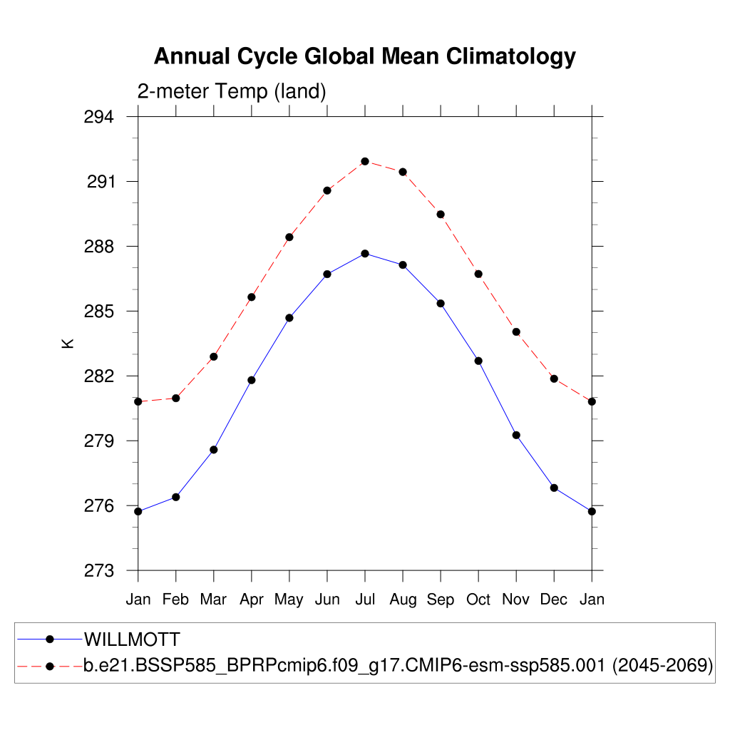 TREFHT 2-meter air temperature (land) plot