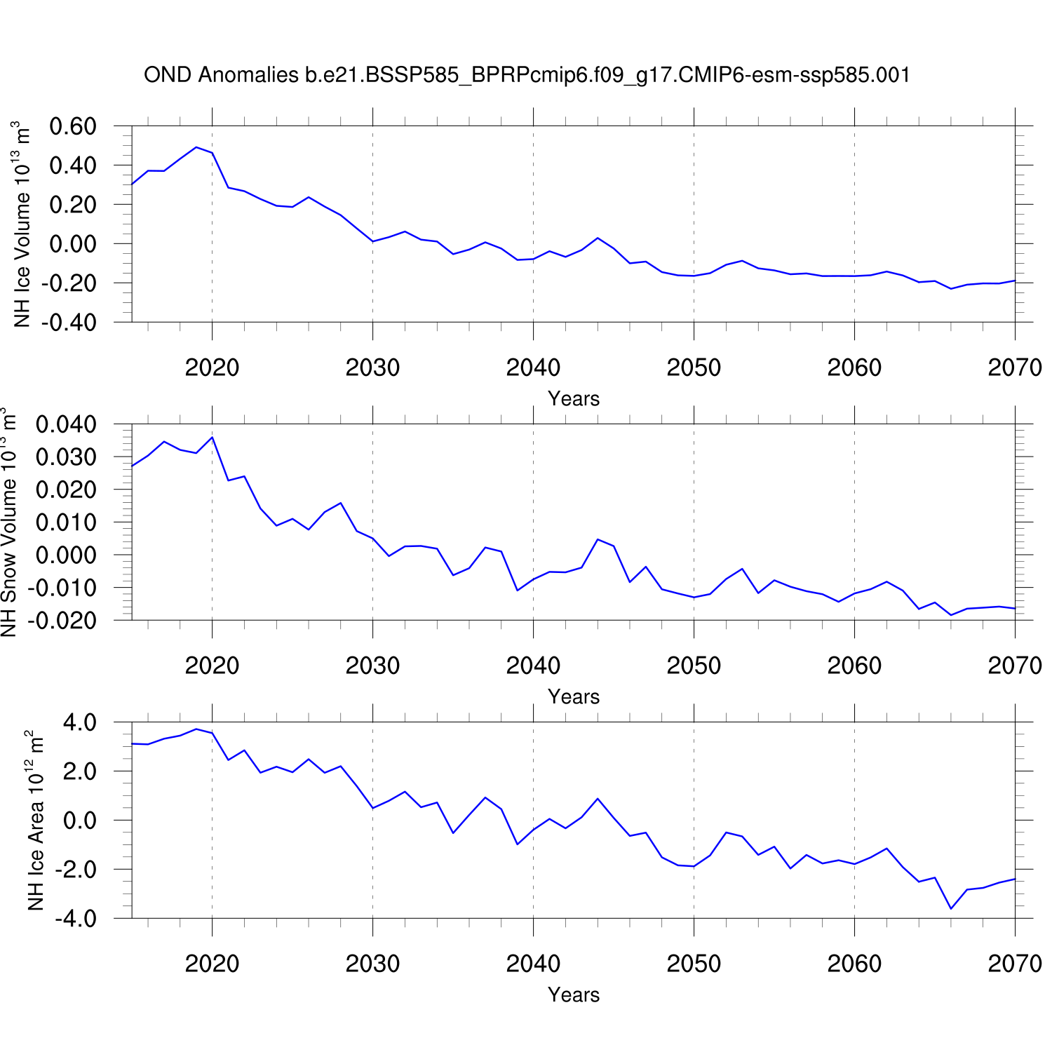 Time Series of Ice Volume, Snow Volume and Ice Area
