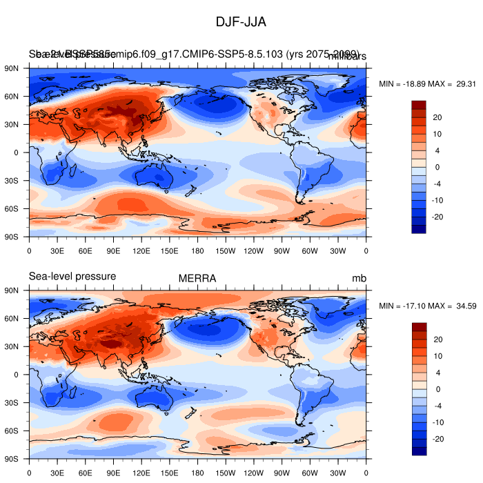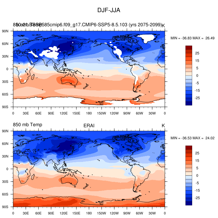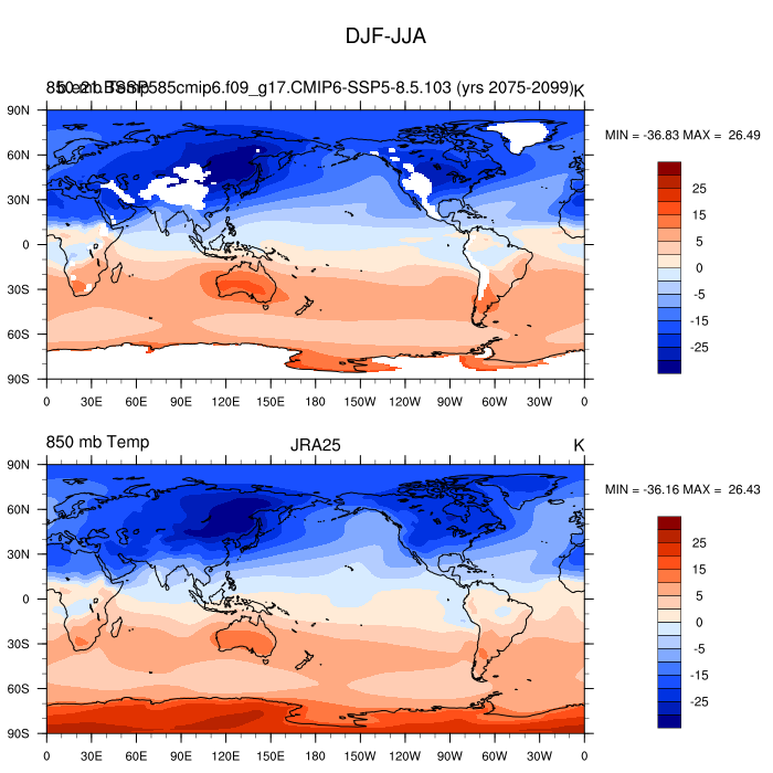 b.e21.BSSP585cmip6.f09_g17.CMIP6-SSP5-8.5.103DIAG Set 9 - Horizontal contour plots of DJF-JJA differences