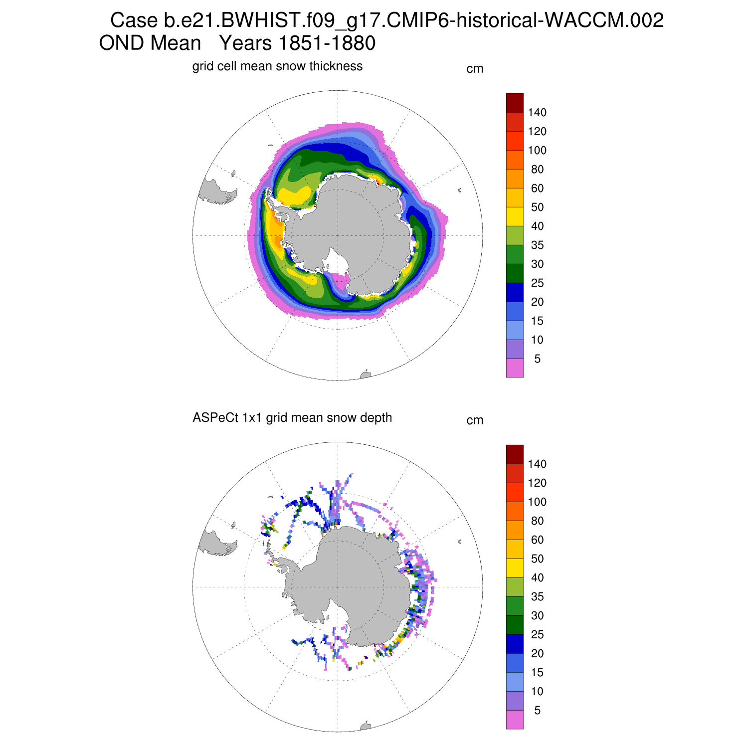 Snow Depth vs ASPeCt (SH) Contour JFM AMJ JAS OND ASPeCt (SH) info