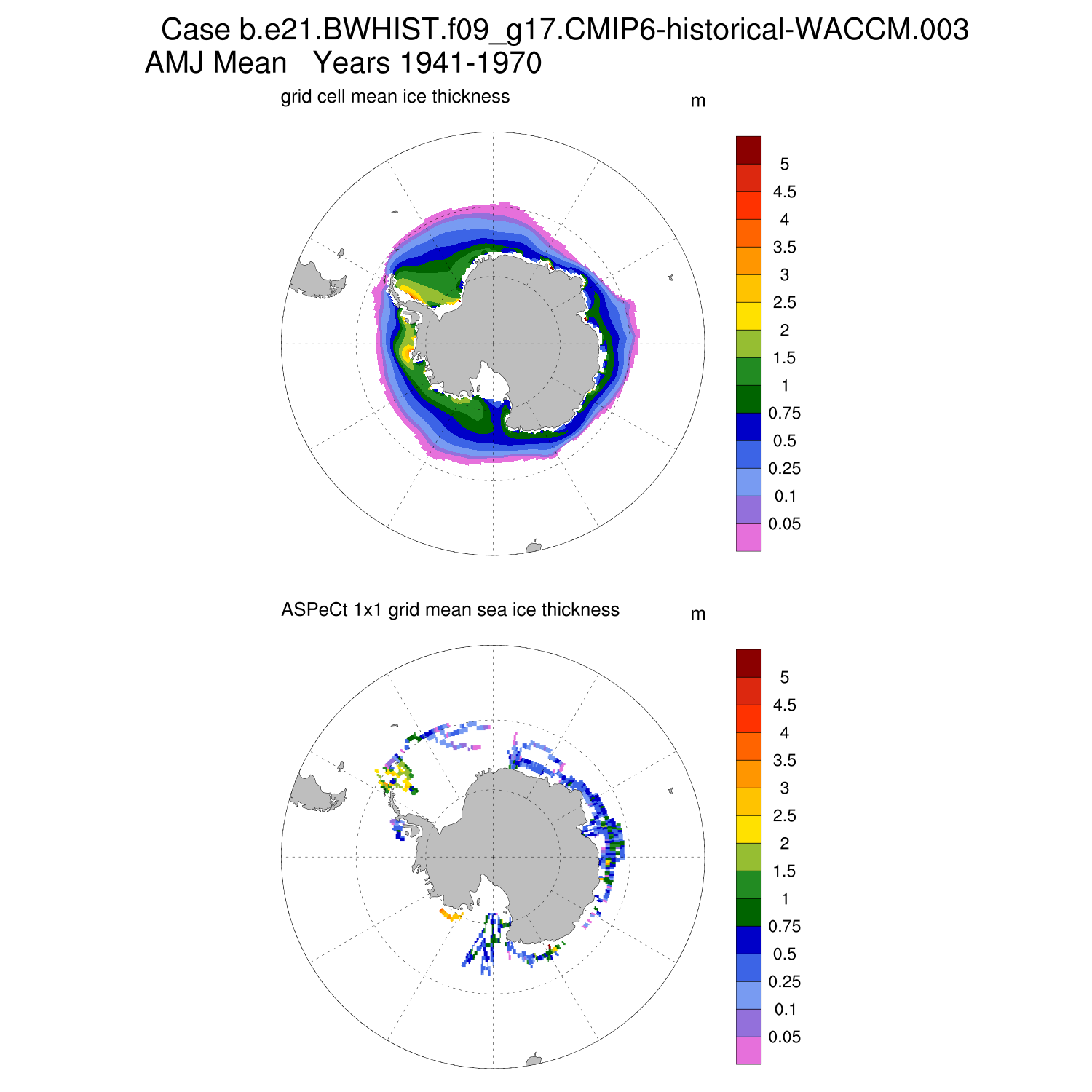 Ice Thickness vs ASPeCt (SH) Contour JFM AMJ JAS OND ASPeCt (SH) info