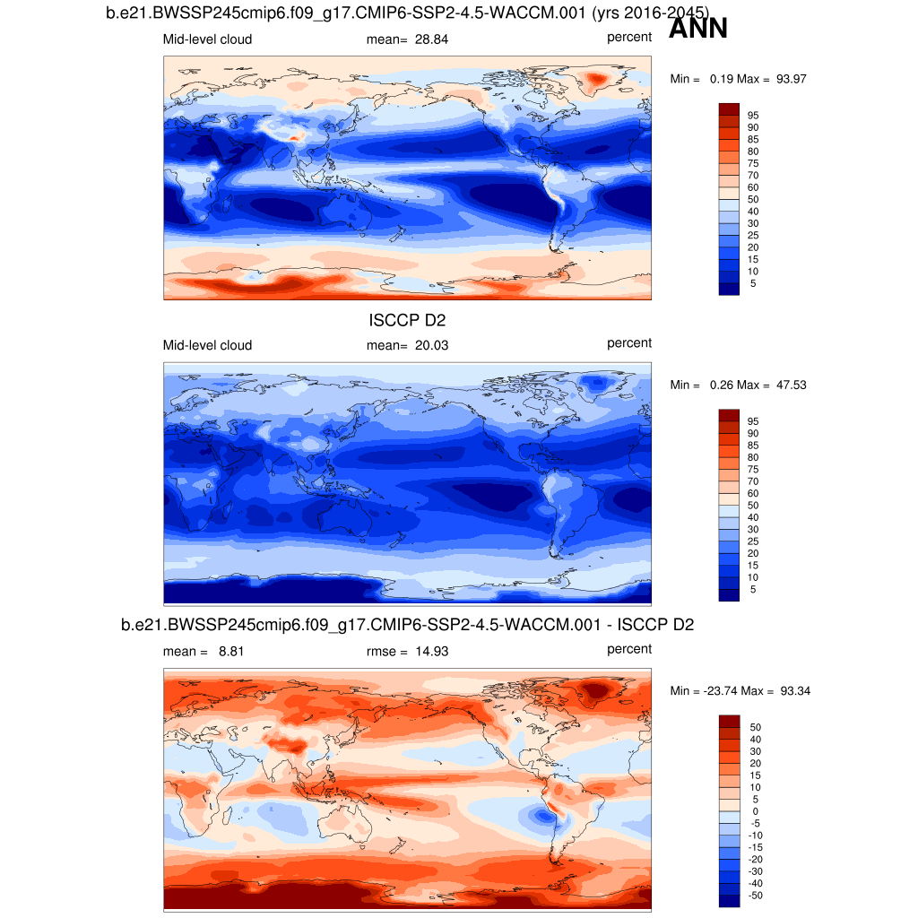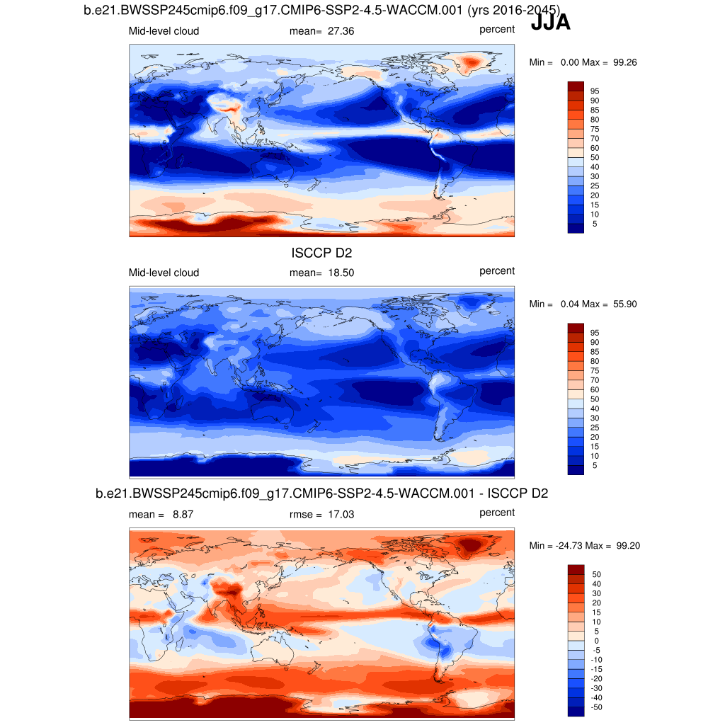 | CLDMED_ISCCPCOSP | Mid-topped cloud amount (tau > 0.3) | plot | plot | plot |