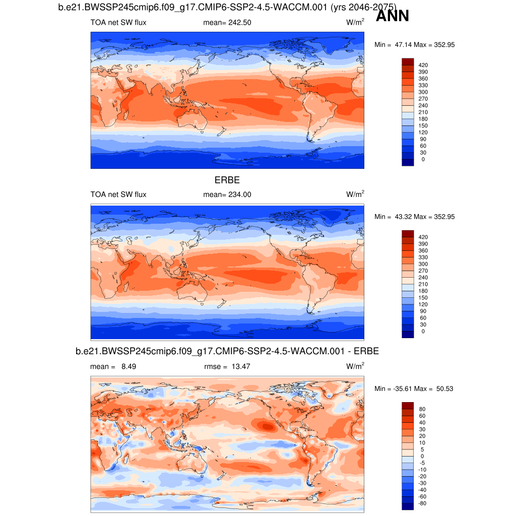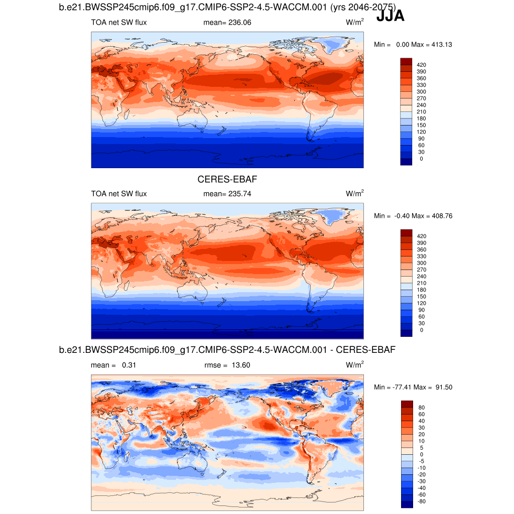 FSNTOA * TOA net SW flux plot plot plot