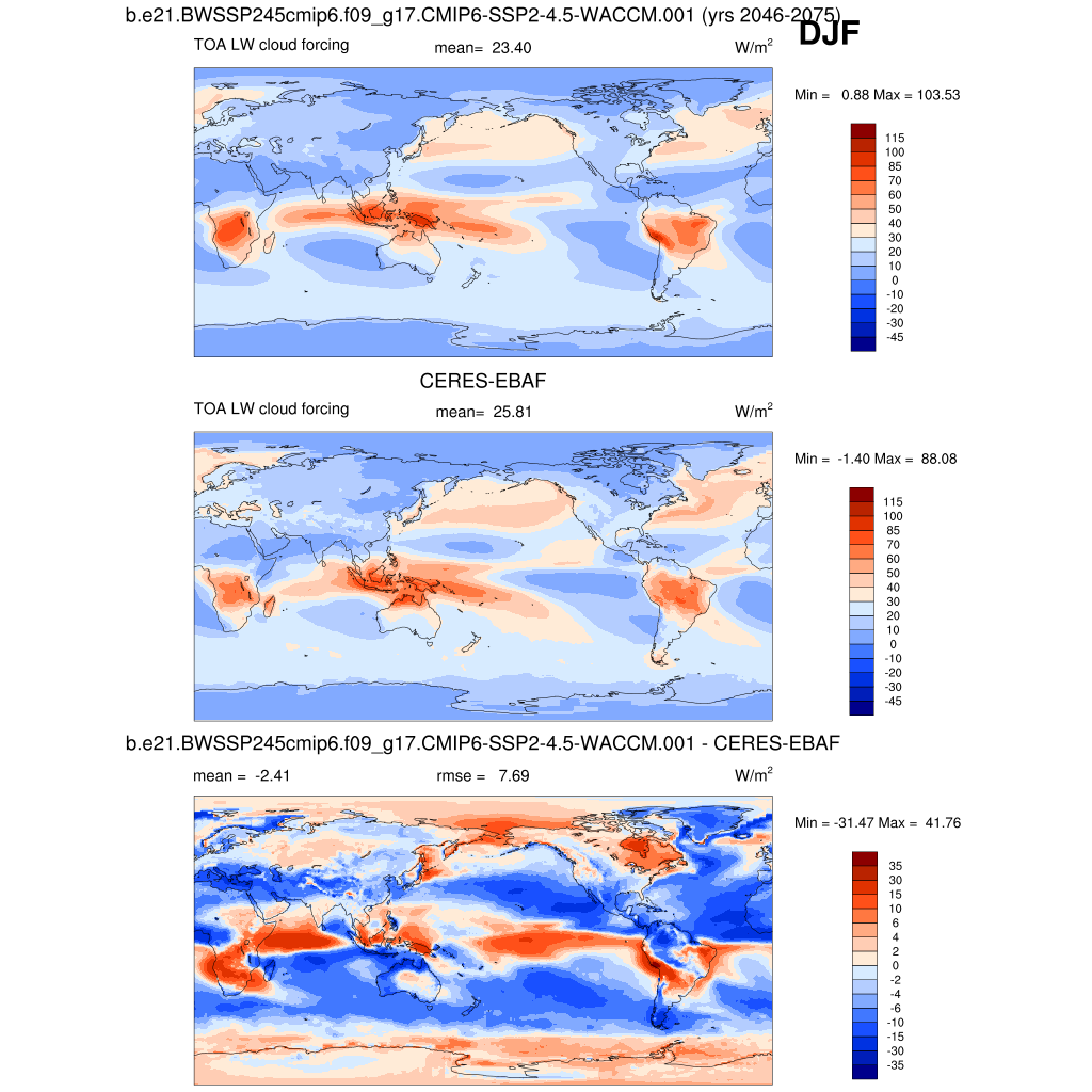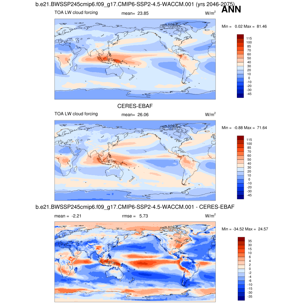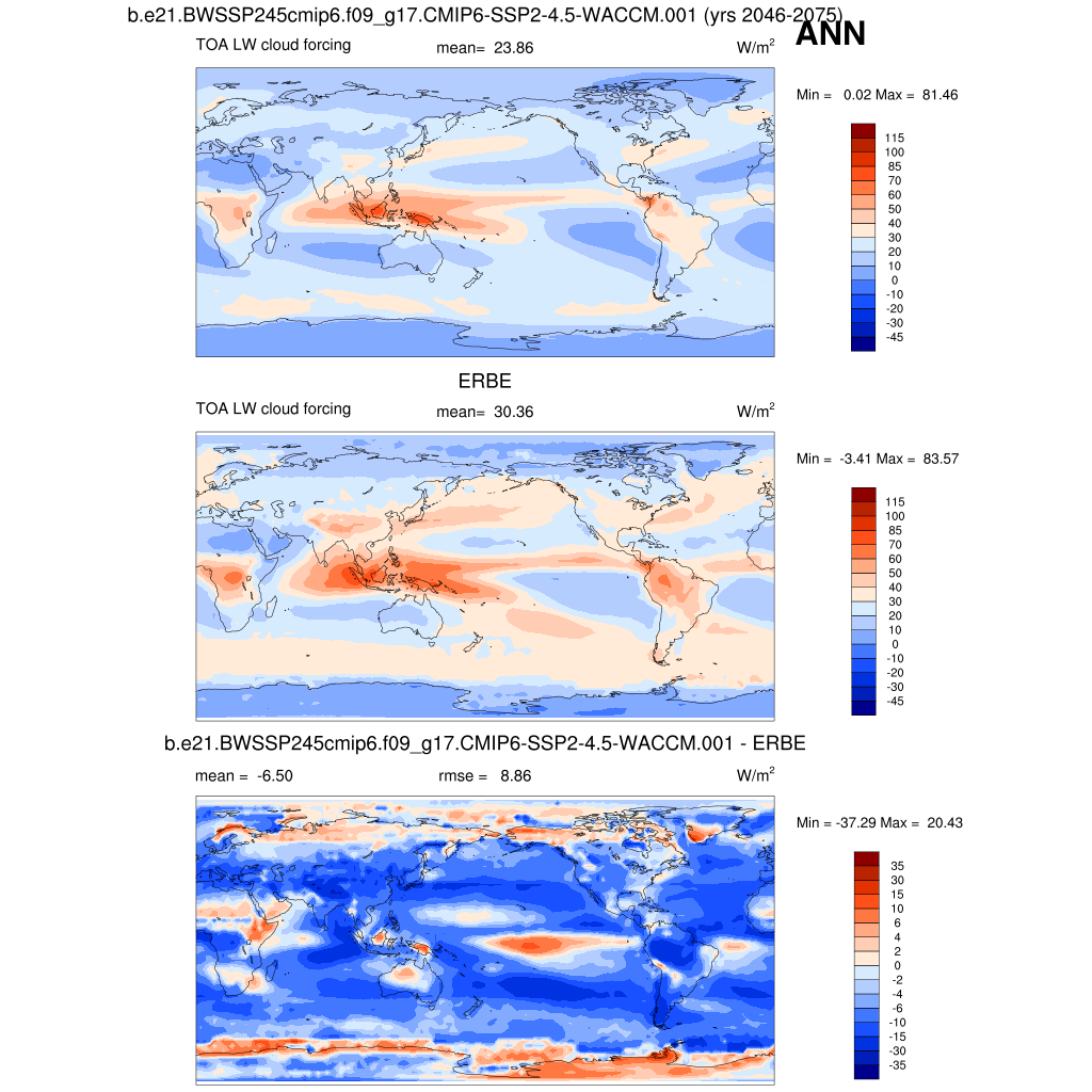 LWCF * TOA longwave cloud forcing plot plot plot
