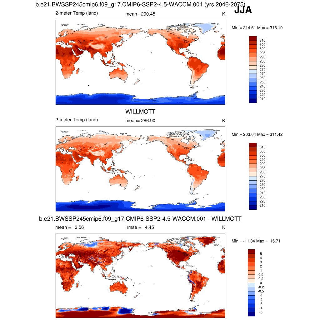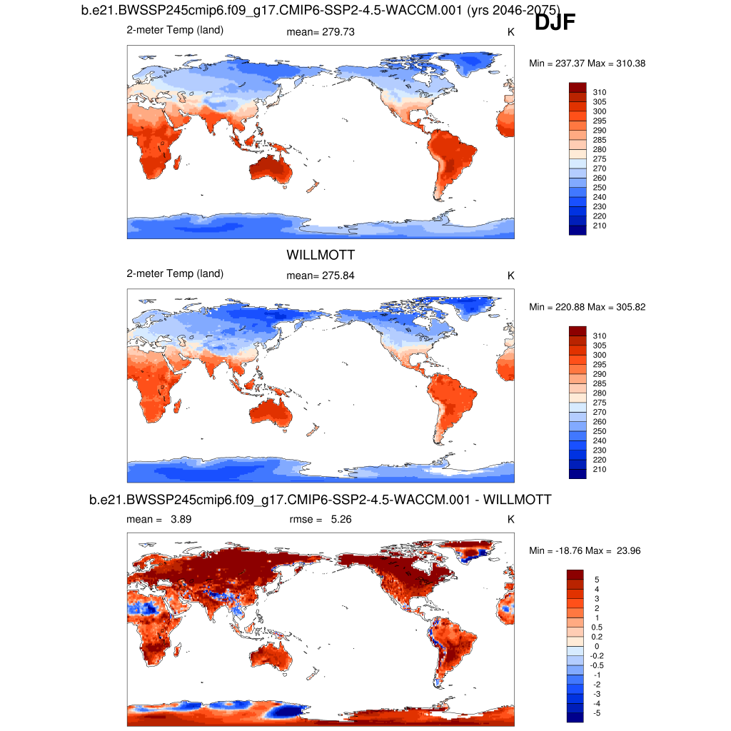 TREFHT 2-meter air temperature (land) plot plot plot