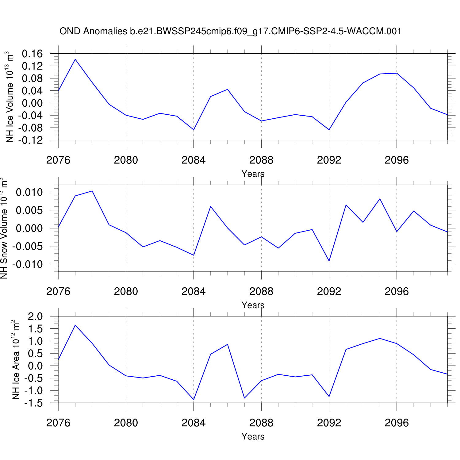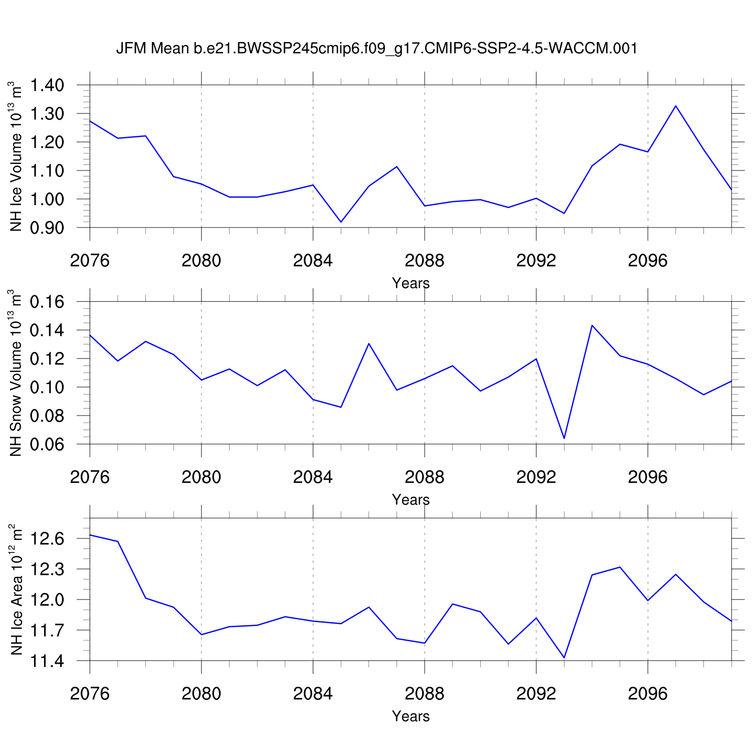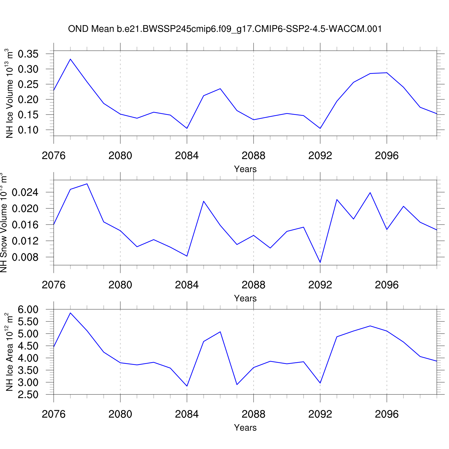 Time Series of Ice Volume, Snow Volume and Ice Area NH SH