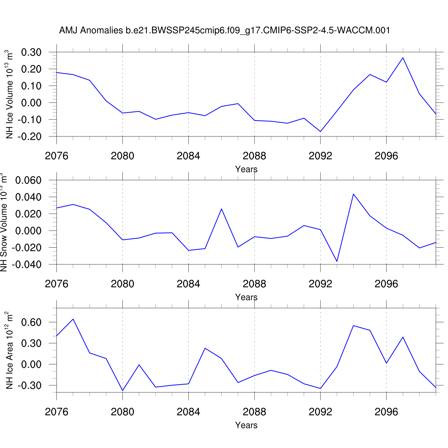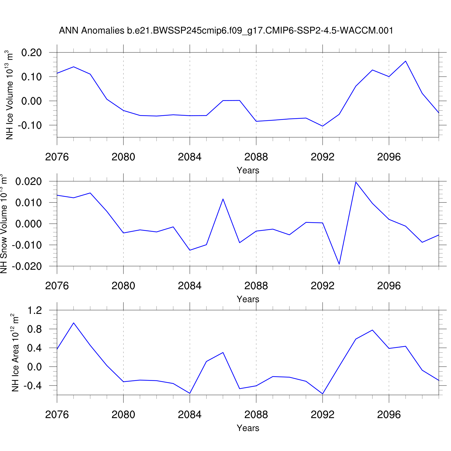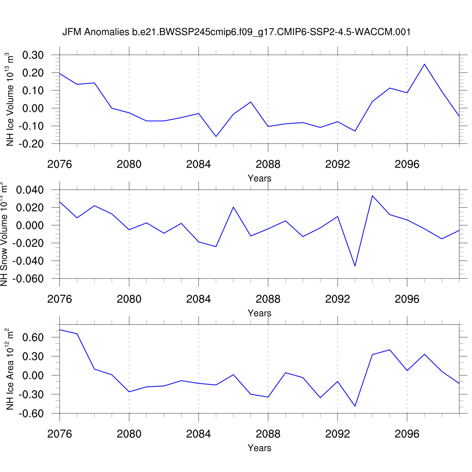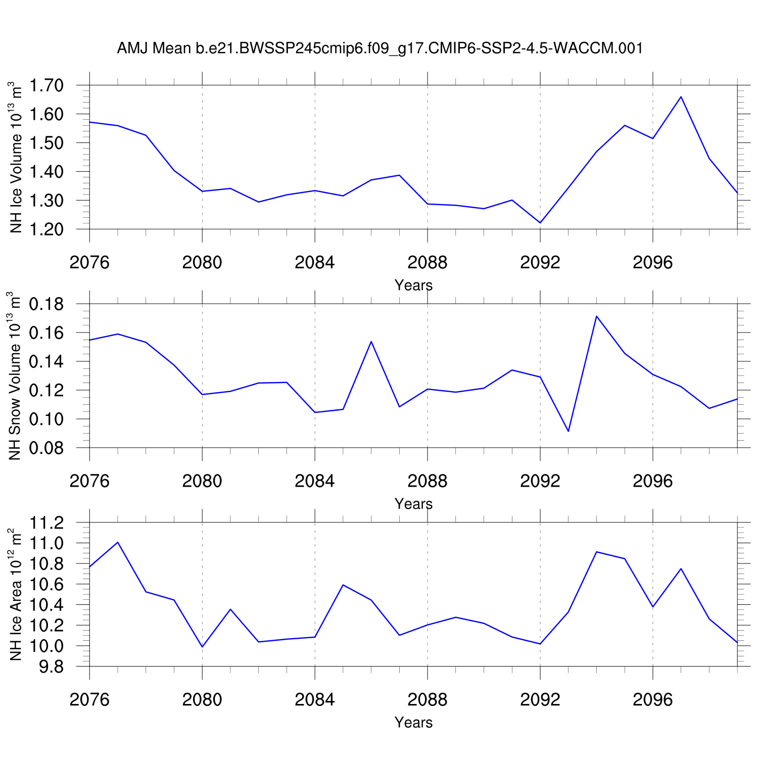 Time Series of Ice Volume, Snow Volume and Ice Area NH SH