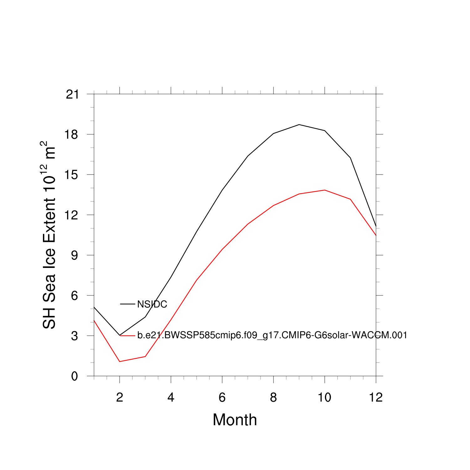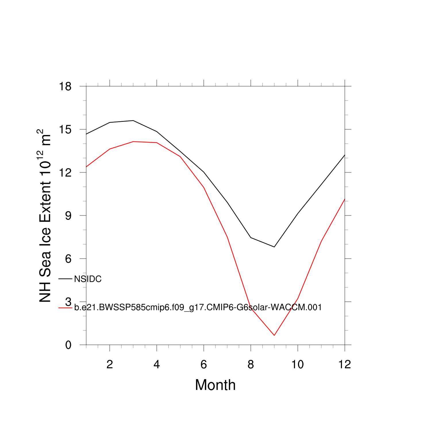 Climatological Monthly Mean Extent vs Obs plot plot