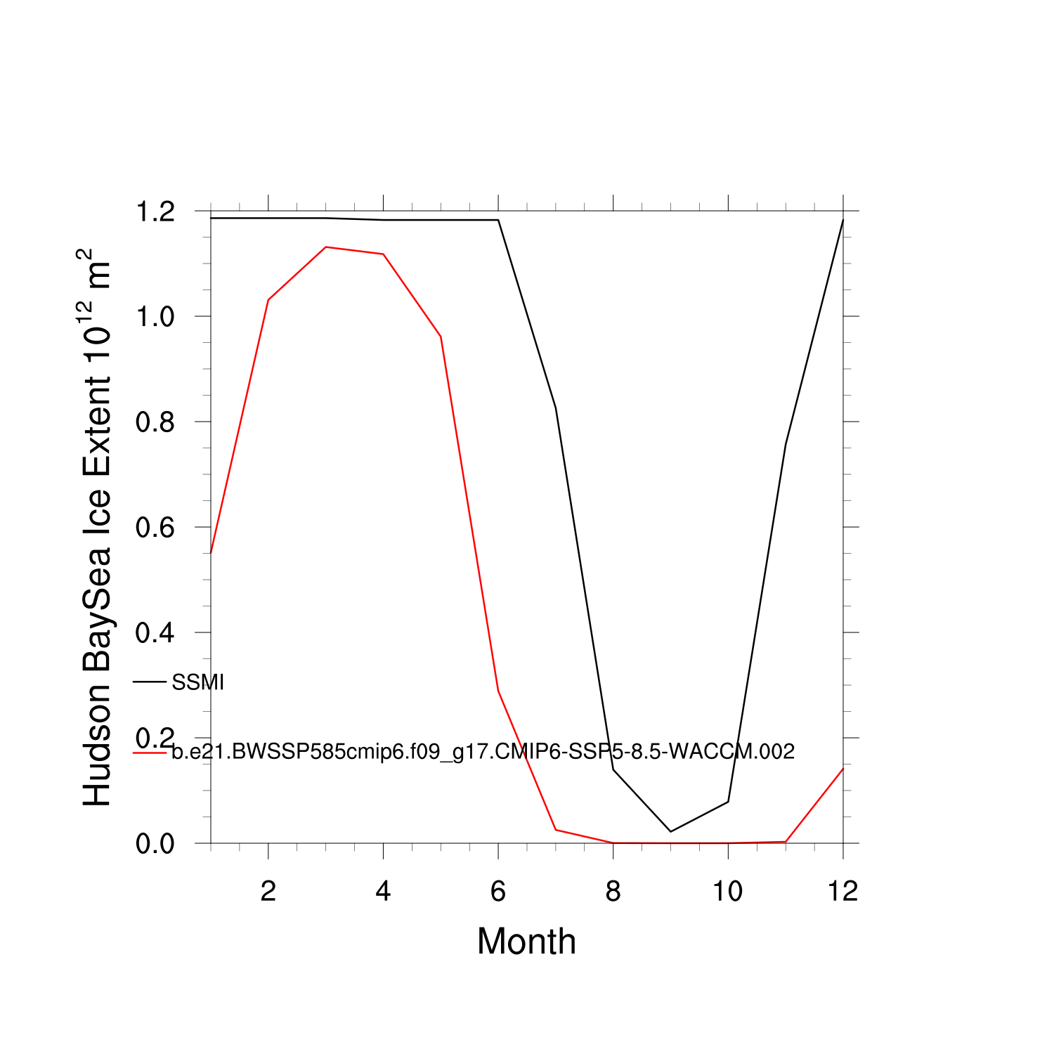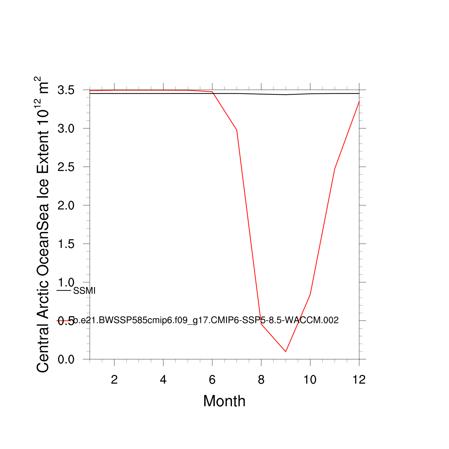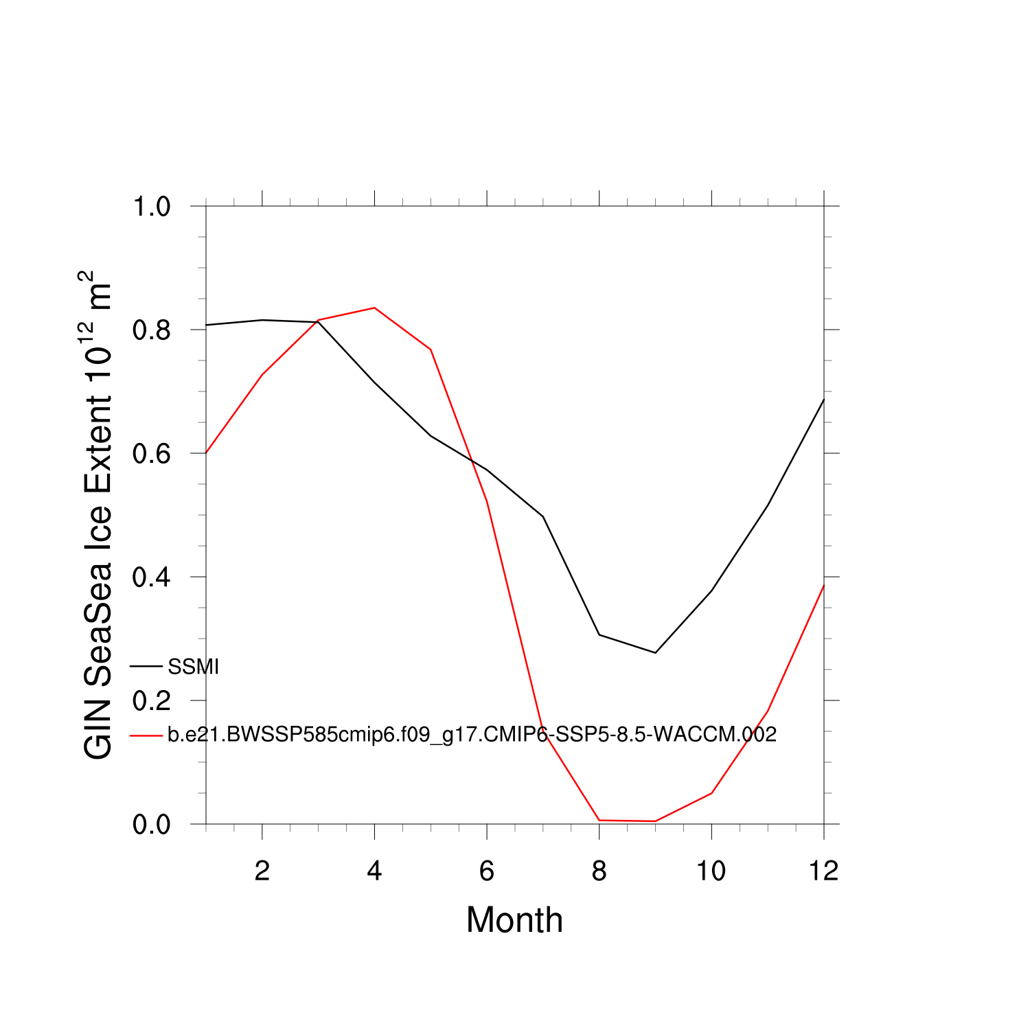Climatological Monthly Mean Extent vs Obs plot