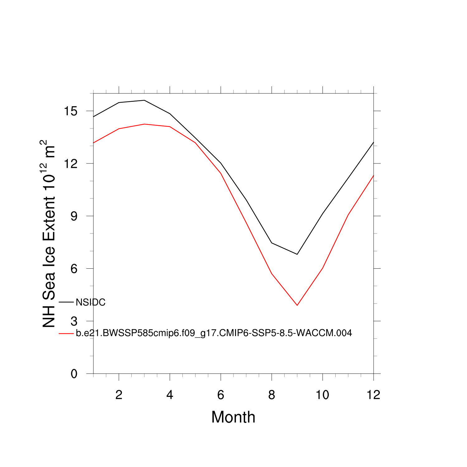 Climatological Monthly Mean Extent vs Obs plot plot