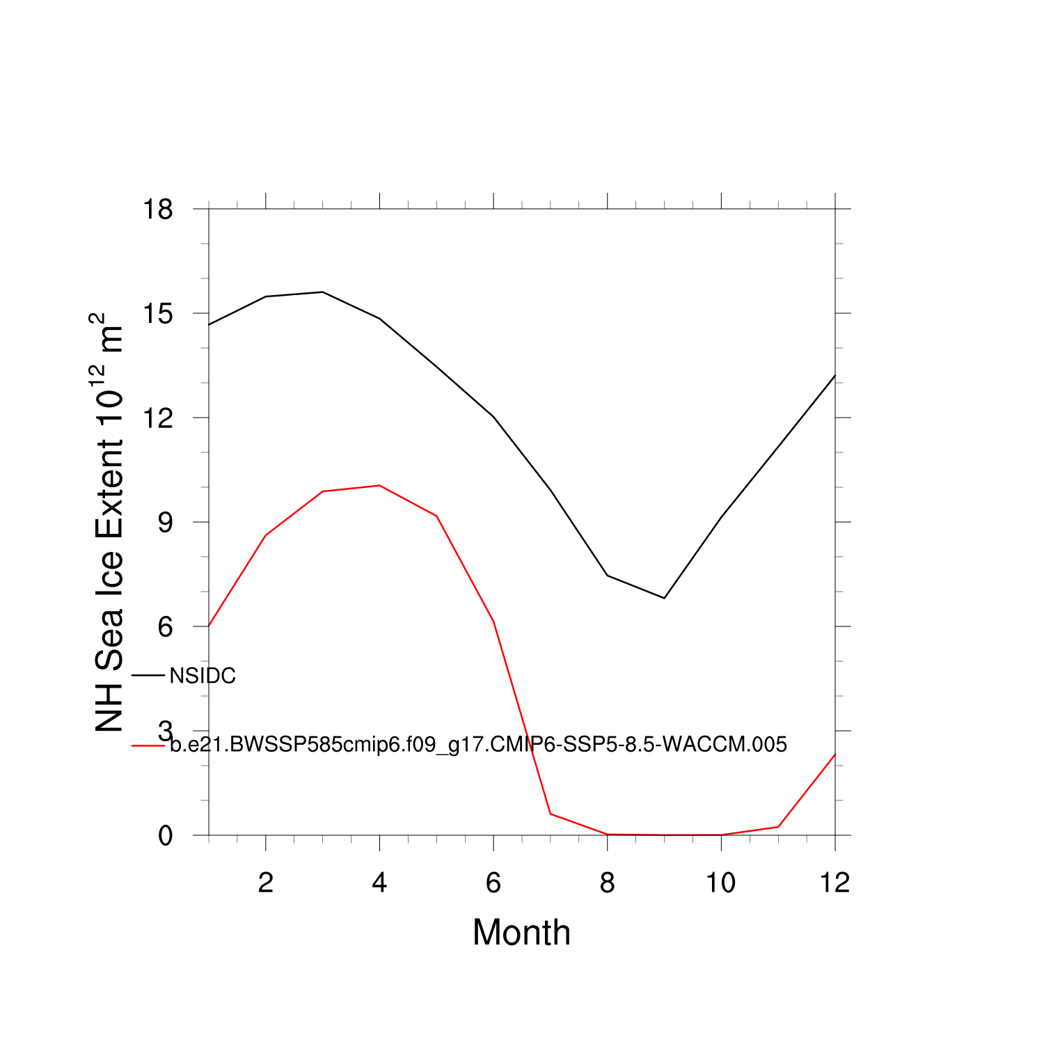 Climatological Monthly Mean Extent vs Obs plot plot