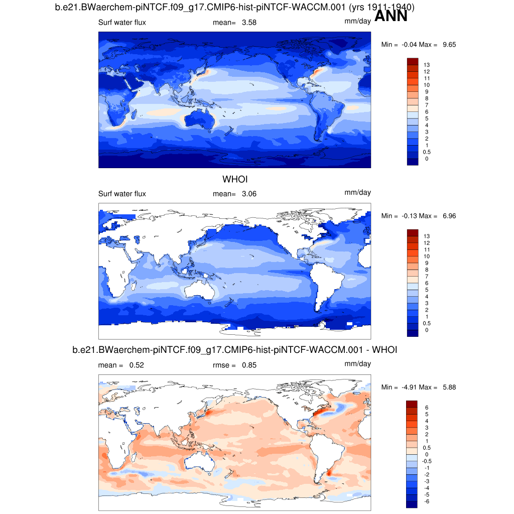 | PRECT * | Precipitation rate (ocean) | plot | plot | plot |