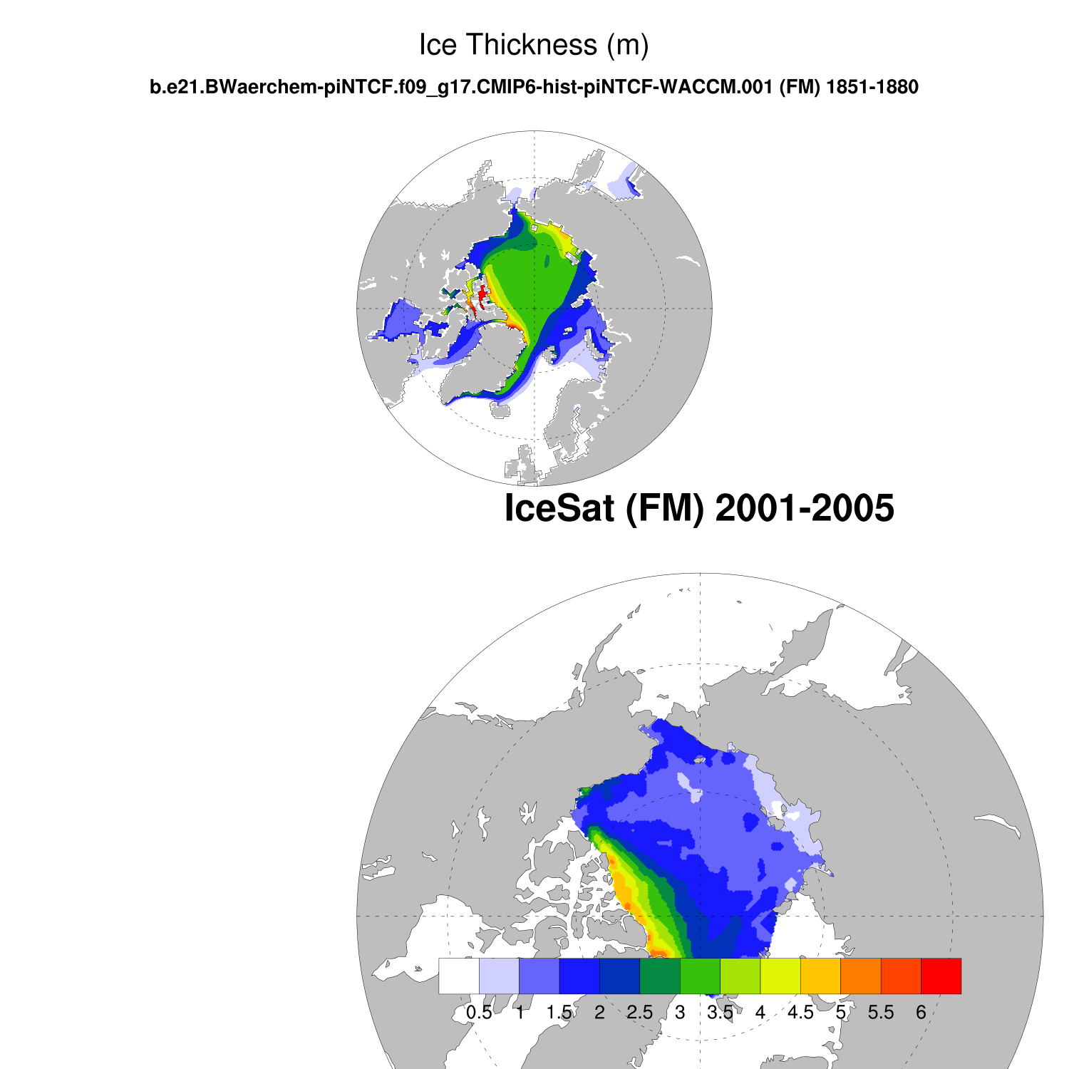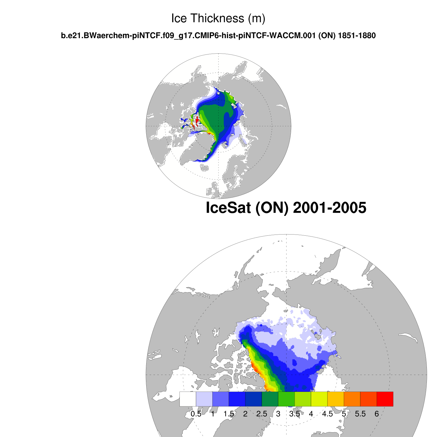 Ice Thickness vs IceSat (NH) Contour FM ON ICESat (NH) info