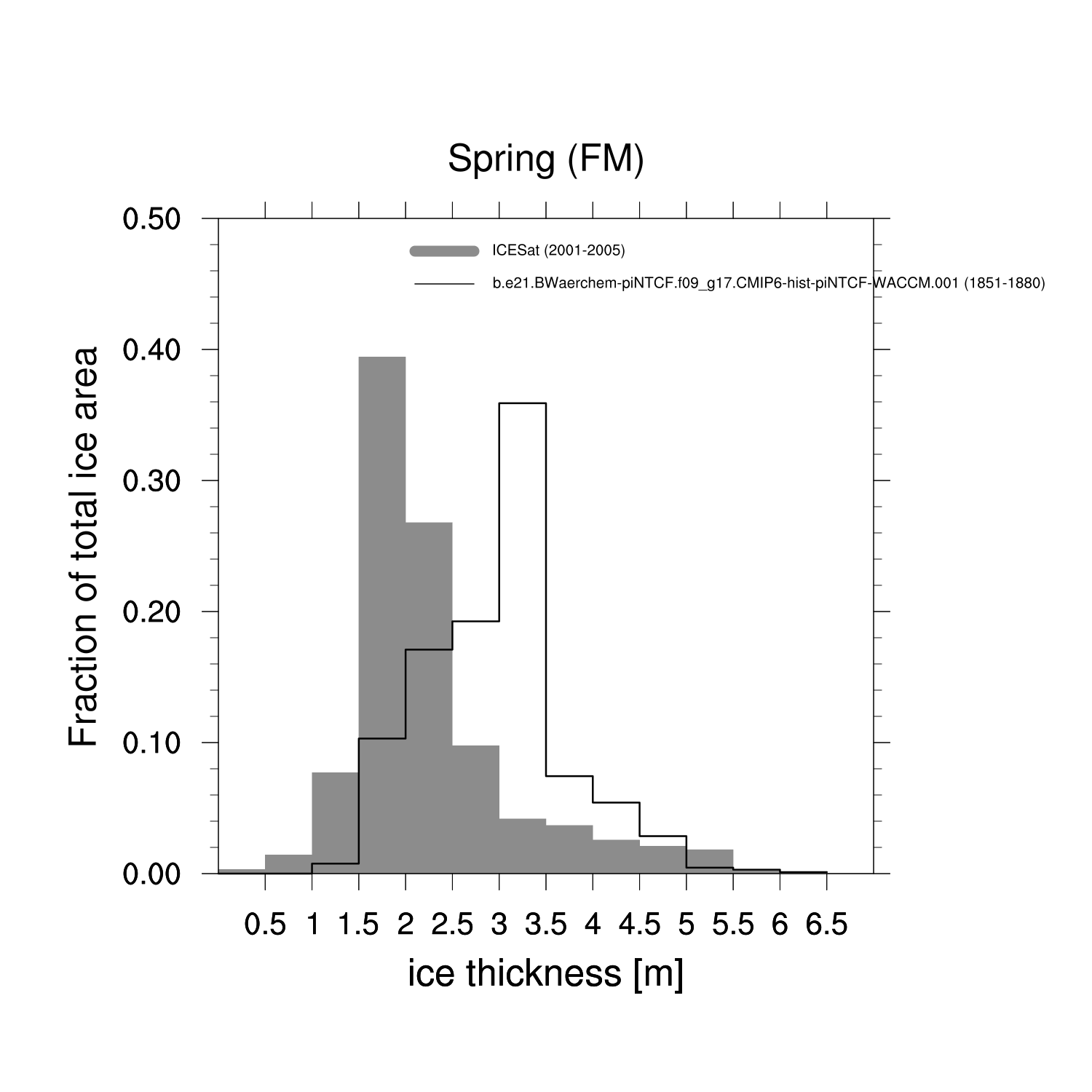 Ice Thickness vs IceSat (NH) Bar Chart FM ON ICESat (NH) info
