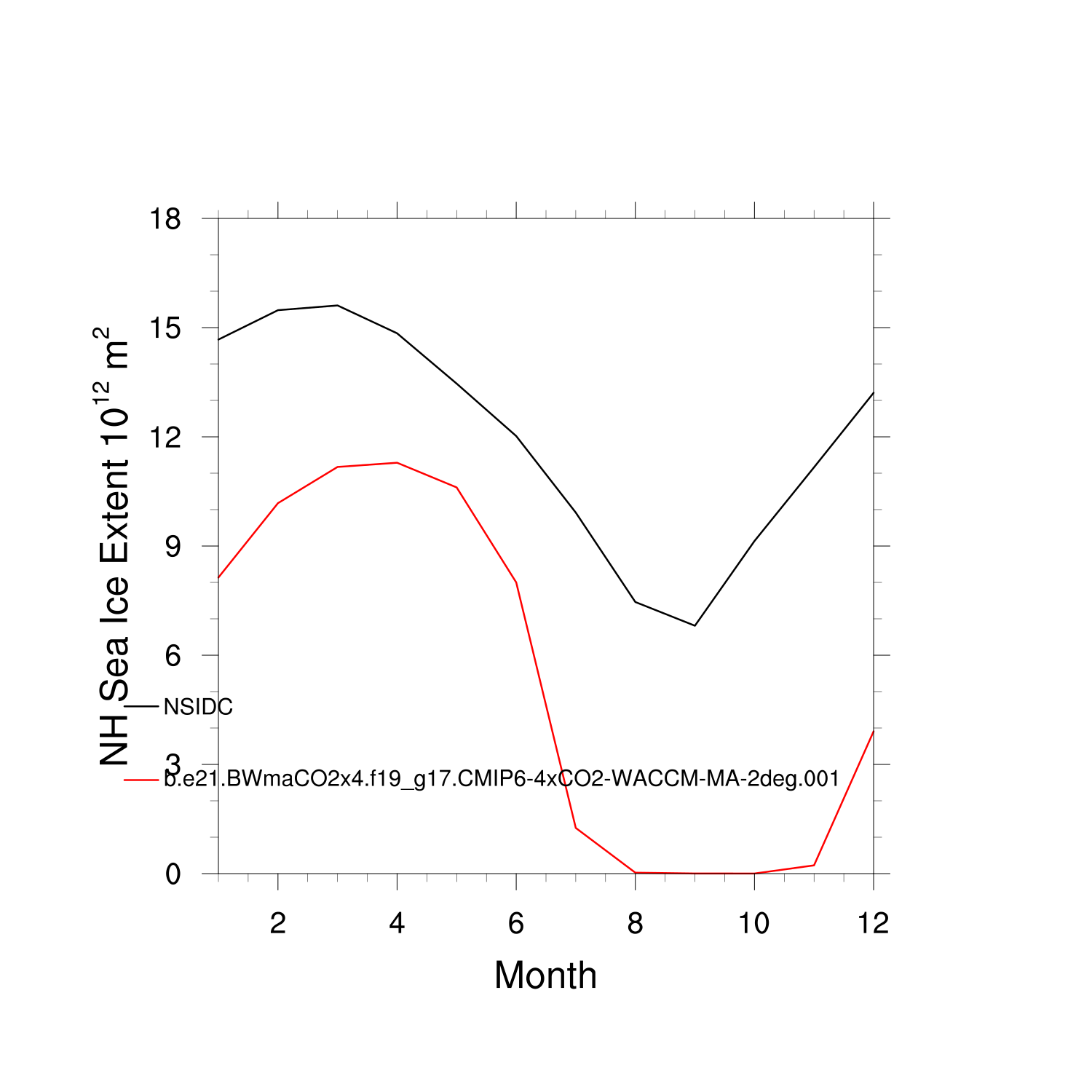 Climatological Monthly Mean Extent vs Obs plot plot