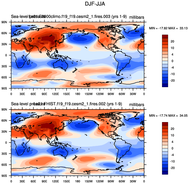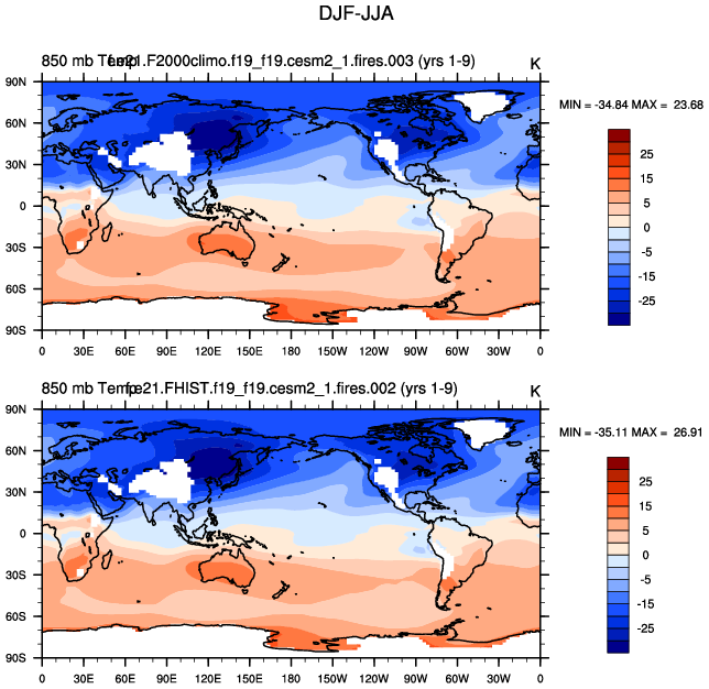 DIAG Set 9 - Horizontal contour plots of DJF-JJA differences