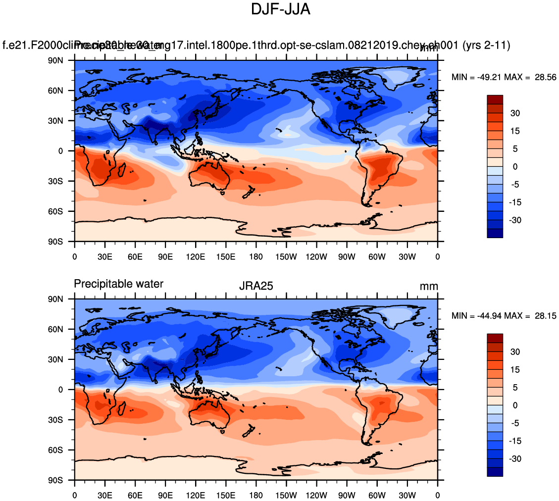 f.e21.F2000climo.ne30_ne30_mg17.intel.1800pe.1thrd.opt-se-cslam.08212019.chey.ch001 DIAG Set 9 - Horizontal contour plots of DJF-JJA differences
