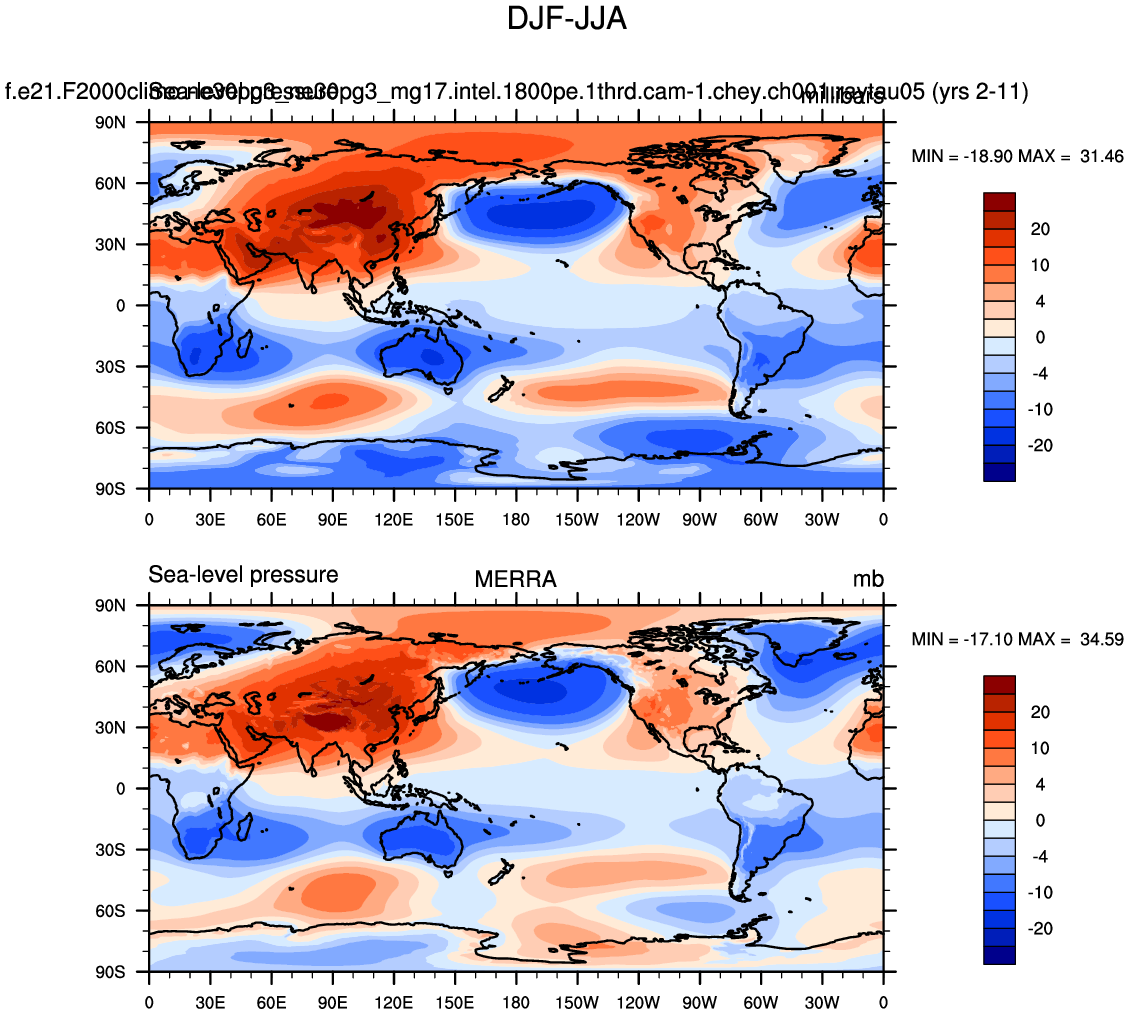 f.e21.F2000climo.ne30pg3_ne30pg3_mg17.intel.1800pe.1thrd.cam-1.chey.ch001.raytau05 DIAG Set 9 - Horizontal contour plots of DJF-JJA differences