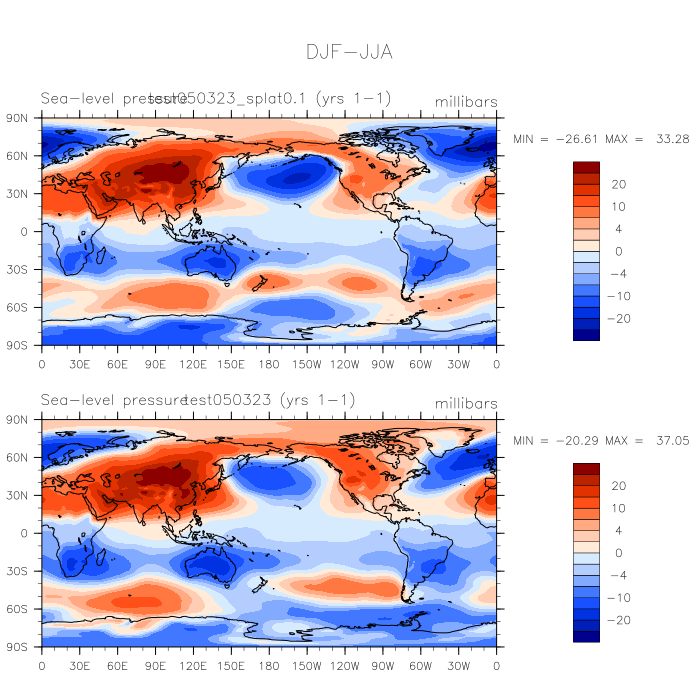 DIAG Set 9 - Horizontal contour plots of DJF-JJA differences