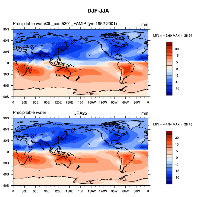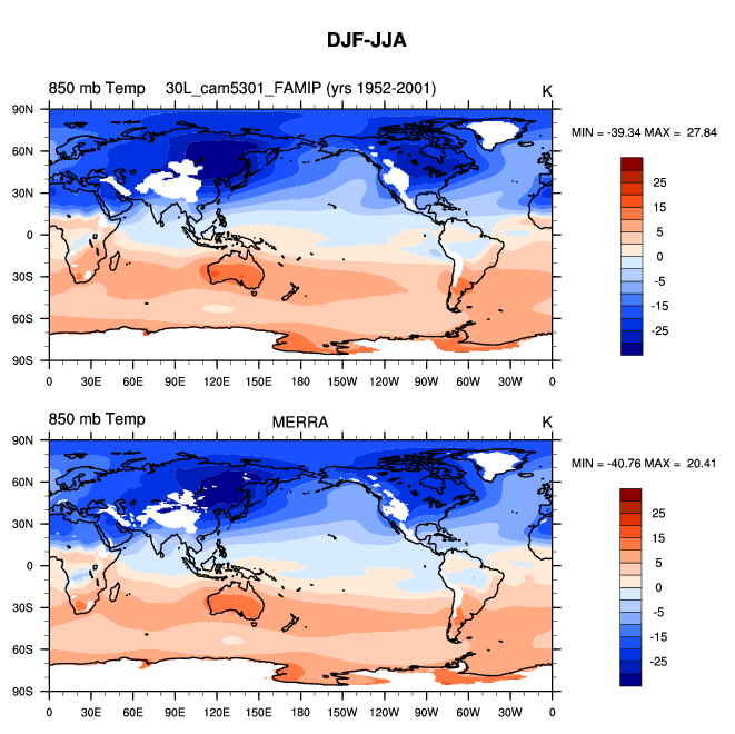 30L_cam5301_FAMIP DIAG Set 9 - Horizontal contour plots of DJF-JJA differences