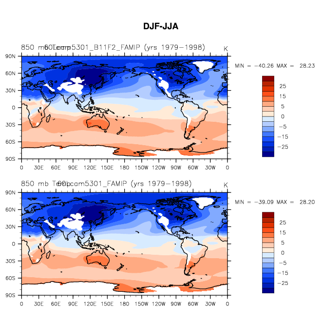 DIAG Set 9 - Horizontal contour plots of DJF-JJA differences