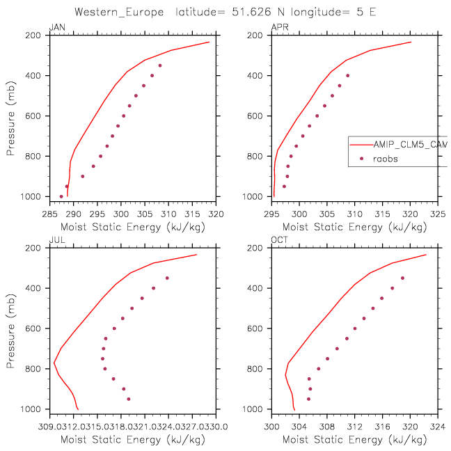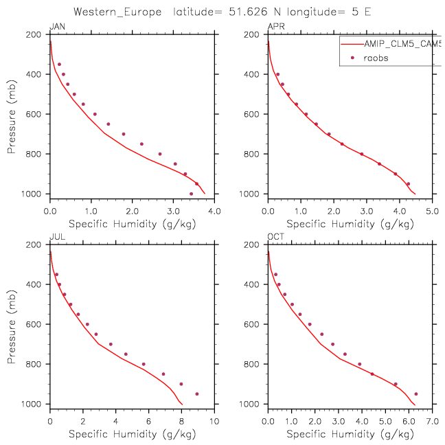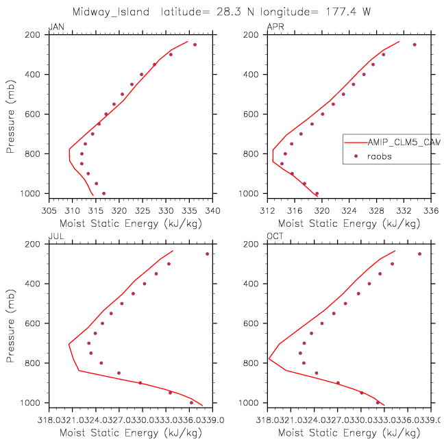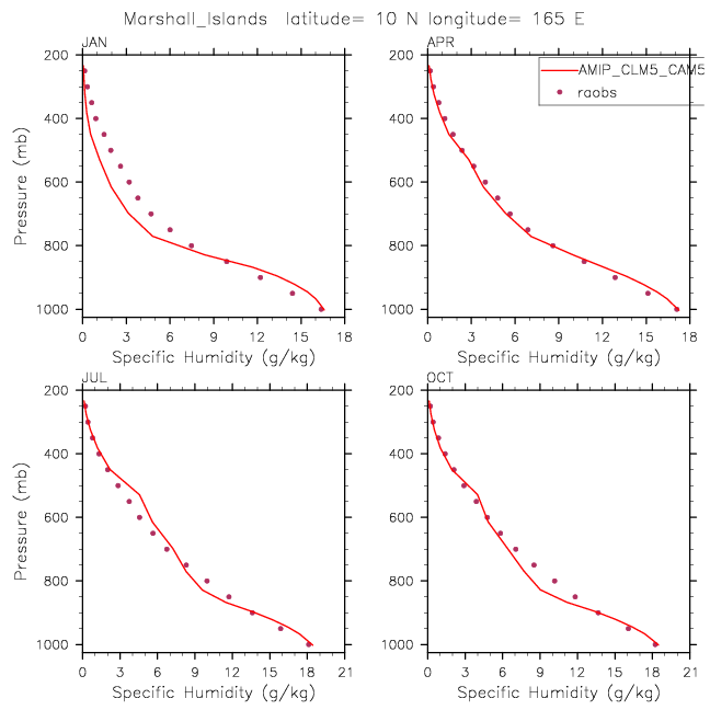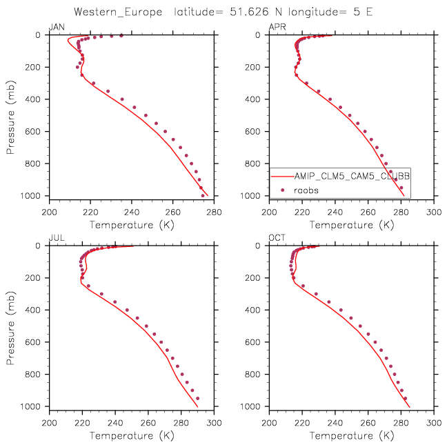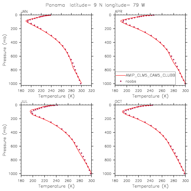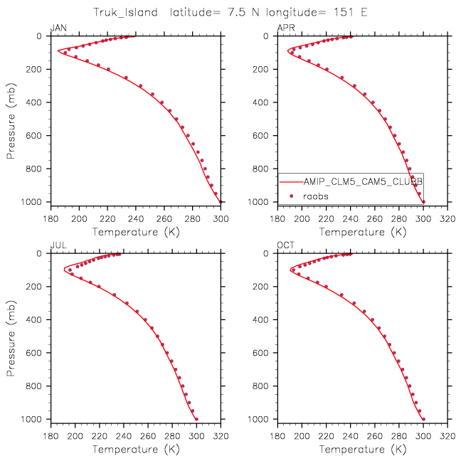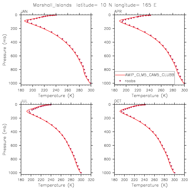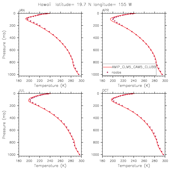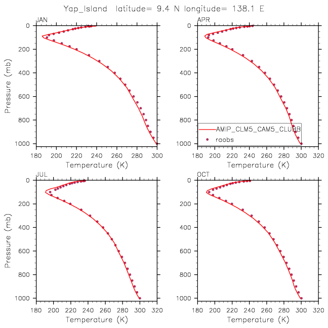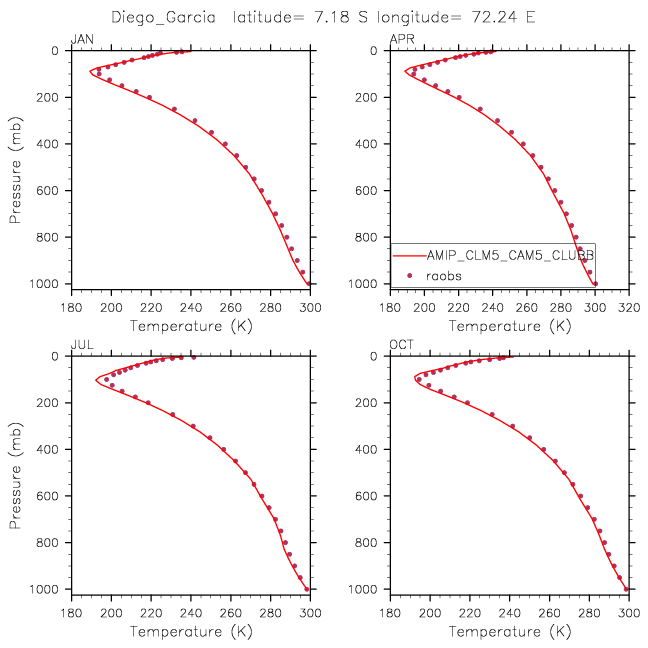 AMIP_CLM5_CAM5_CLUBB Set 12 - Vertical Profiles at 17 selected raobs stations