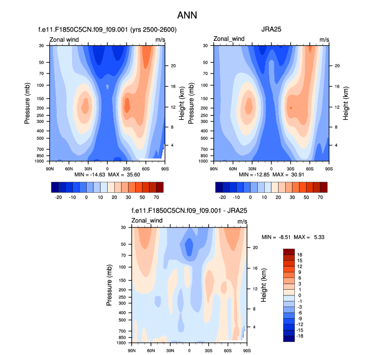 DIAG Set 4 - Vertical contour plots of DJF, JJA and ANN zonal means