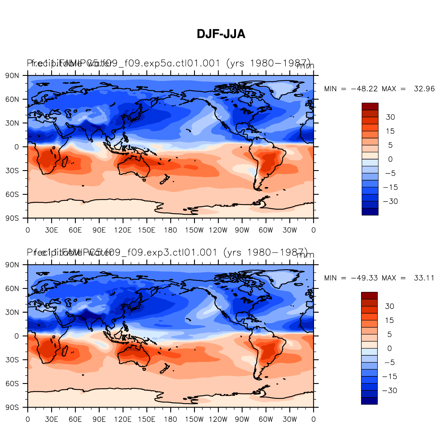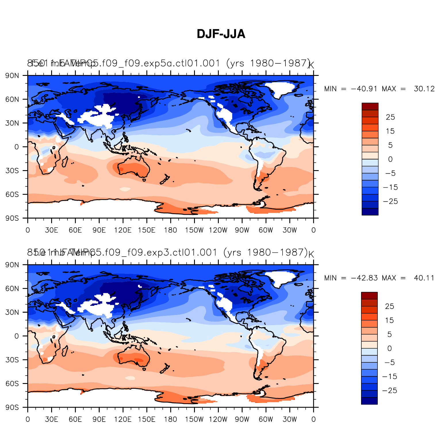 DIAG Set 9 - Horizontal contour plots of DJF-JJA differences