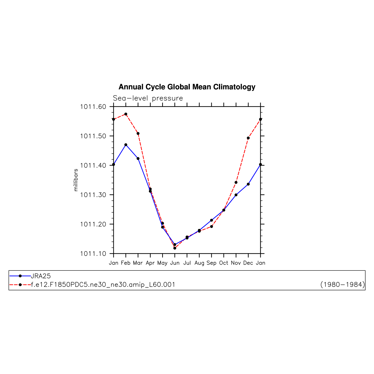 DIAG Set 10 - Annual cycle line plots of global means