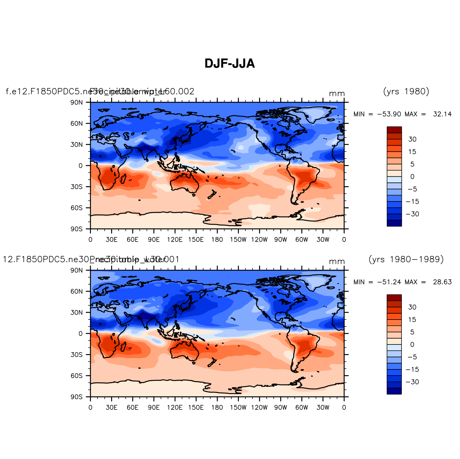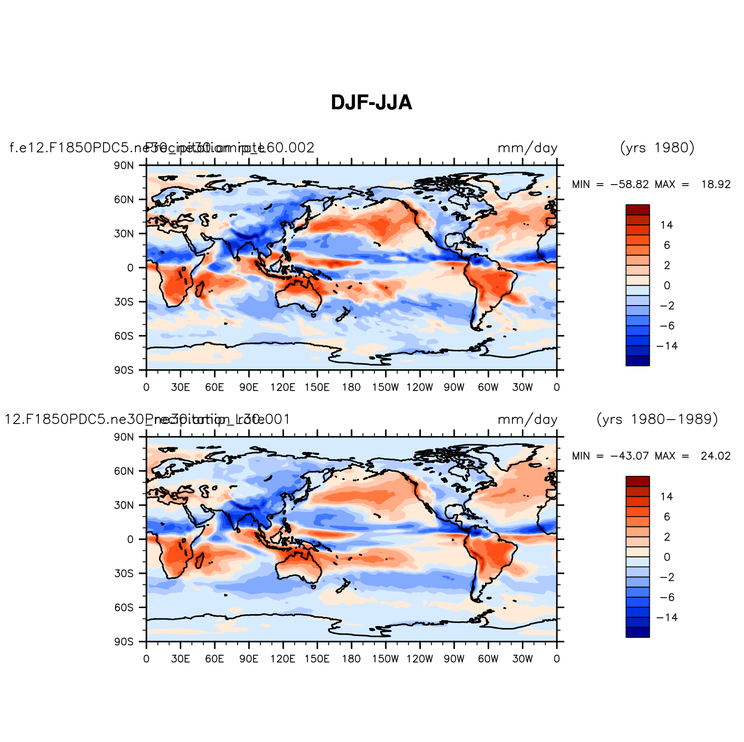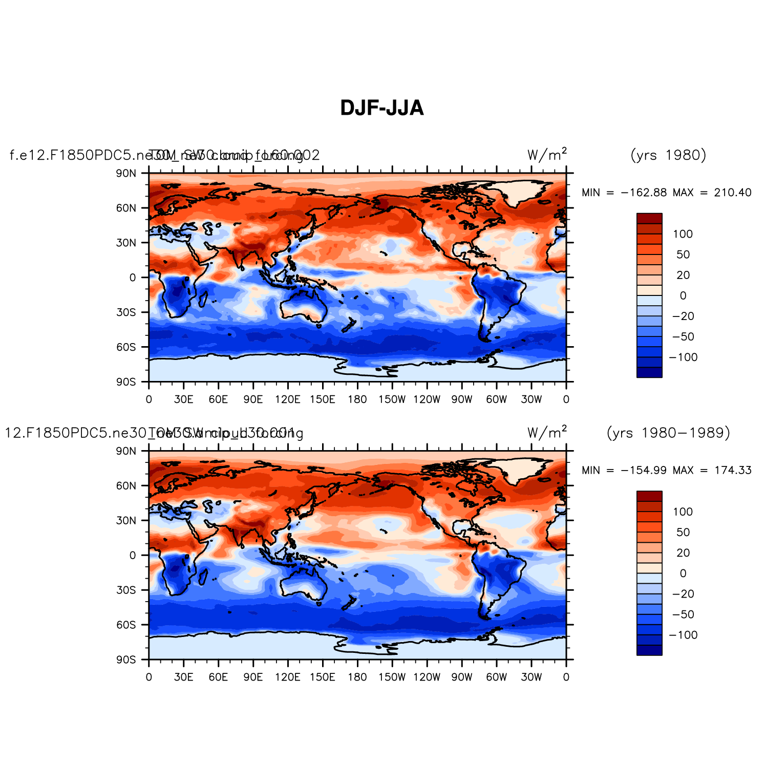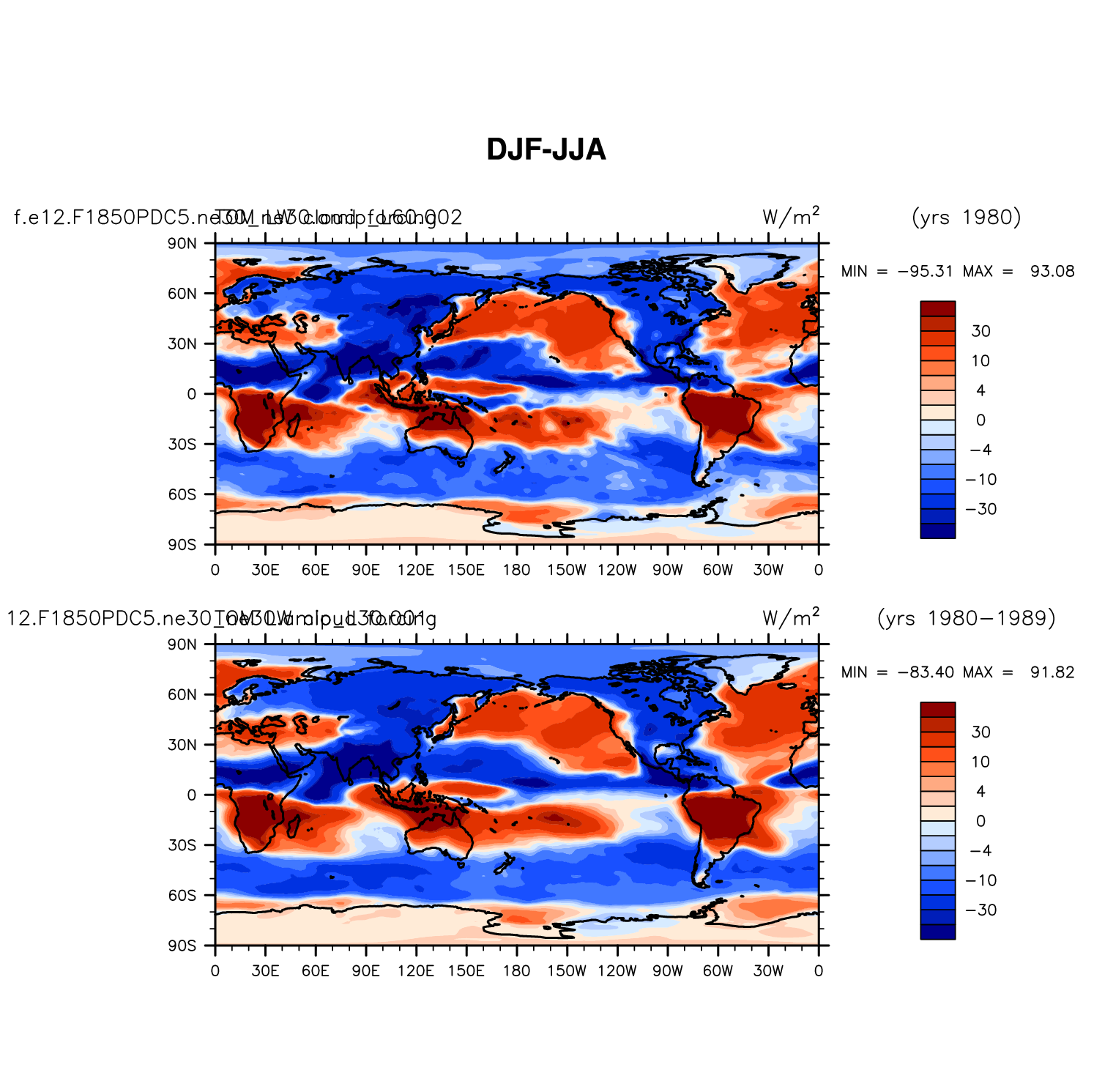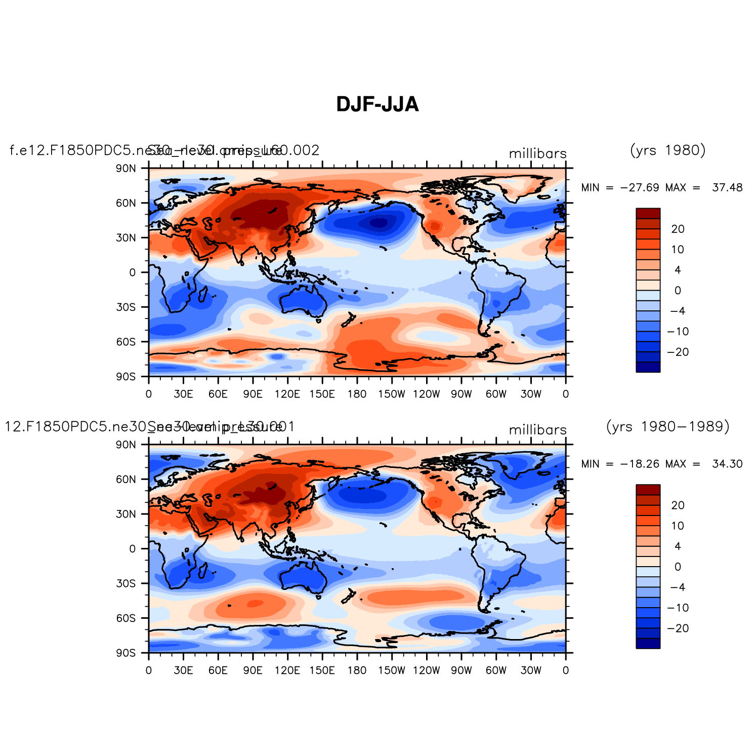 DIAG Set 9 - Horizontal contour plots of DJF-JJA differences