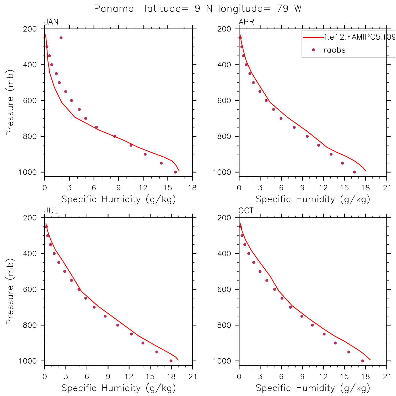 f.e12.FAMIPC5.f09_f09.amip_L30_cosp.001 Set 12 - Vertical Profiles at 17 selected raobs stations