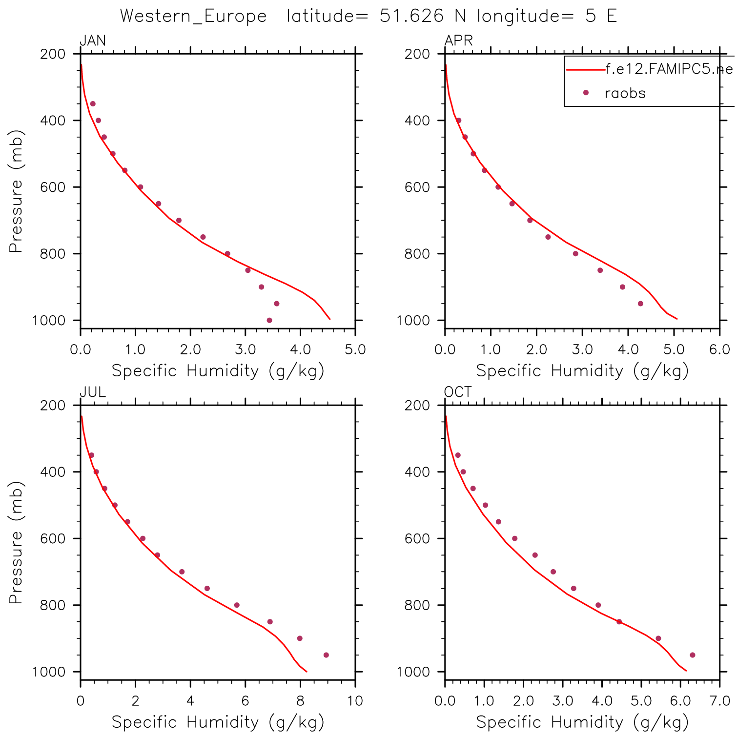 f.e12.FAMIPC5.ne30_ne30.amip_L30.001 Set 12 - Vertical Profiles at 17 selected raobs stations