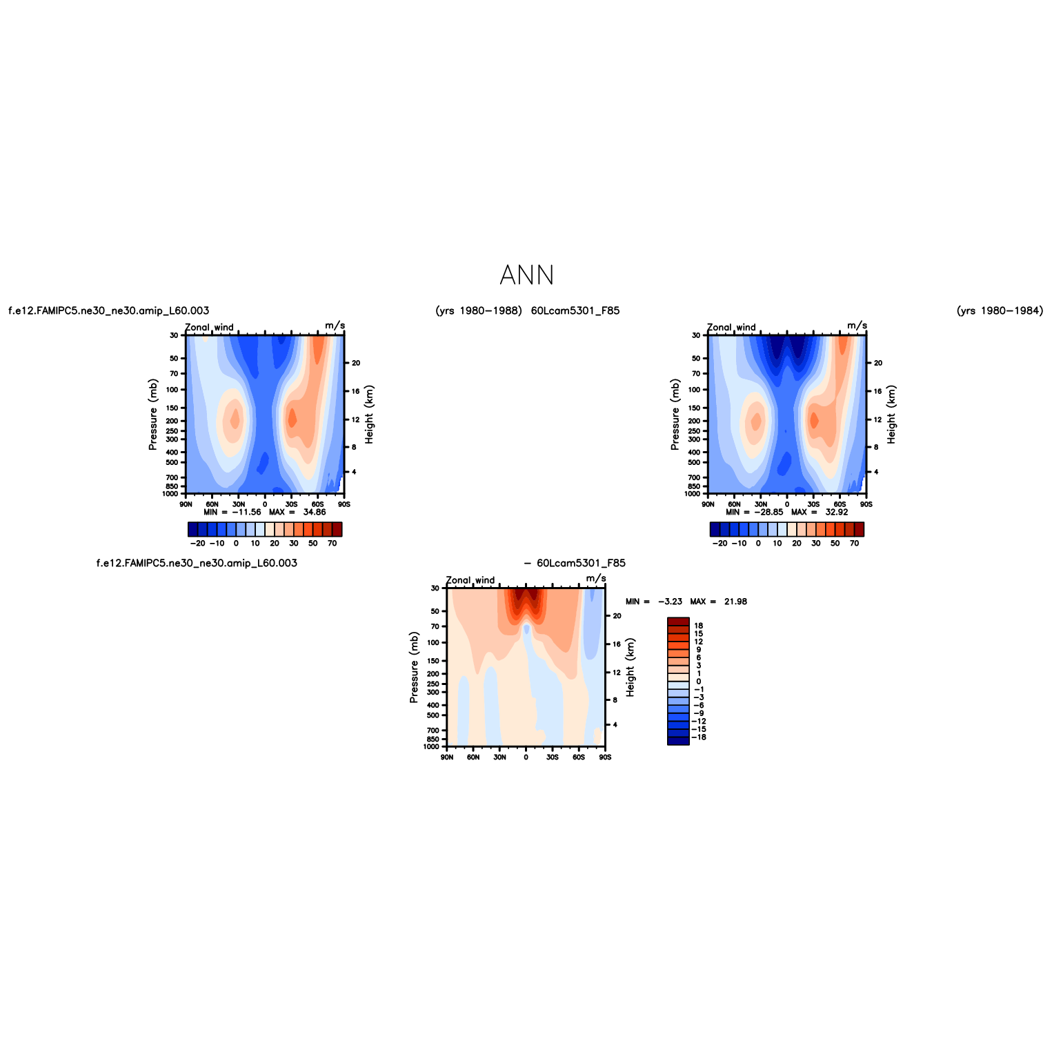 DIAG Set 4 - Vertical contour plots of DJF, MAM, JJA, SON and ANN zonal means